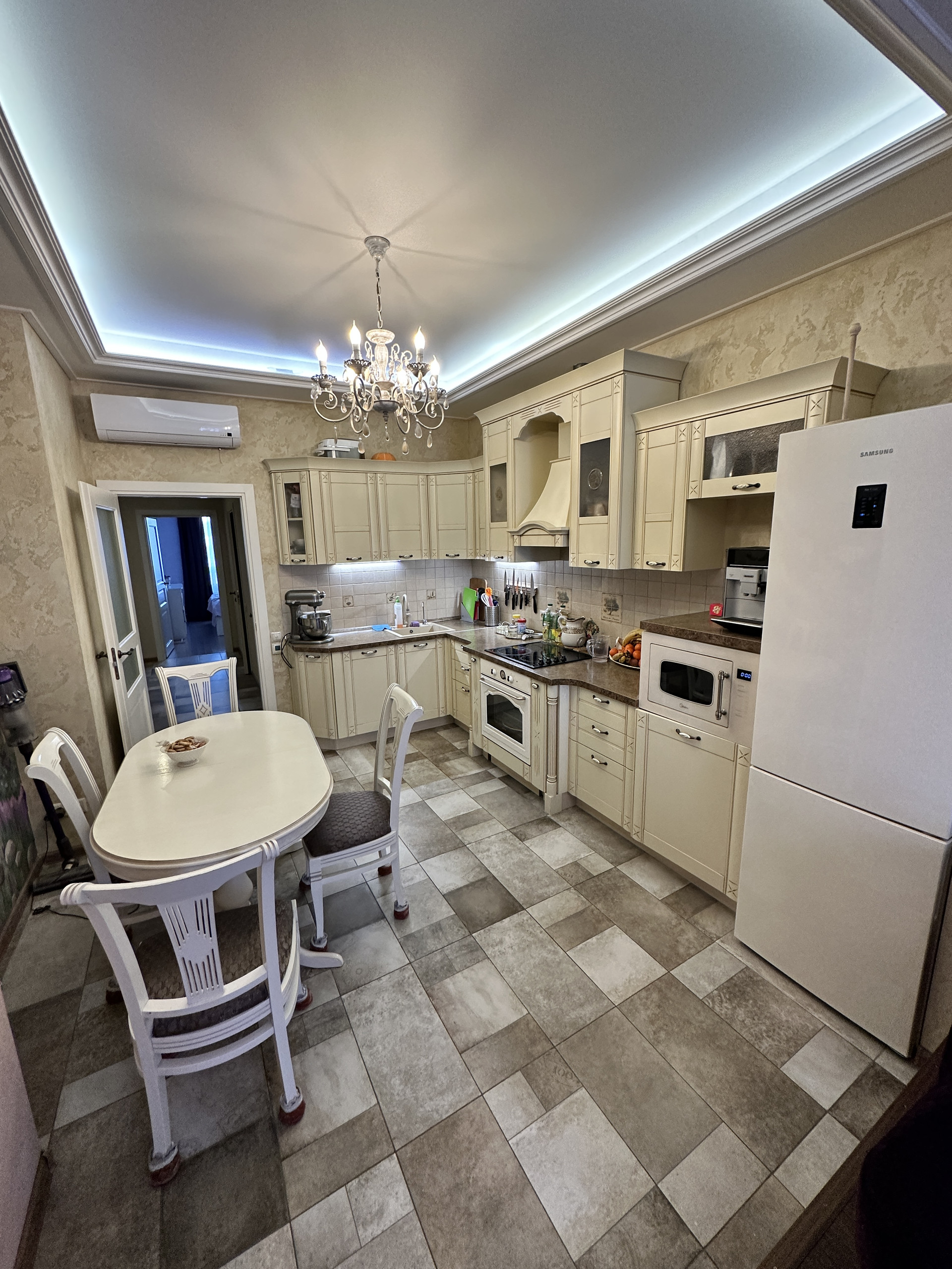 Высота потолков - 3 метра. 2 Санузла ( в гостевом сделали постирочную, что экономит полезную площадь ) Просторная кухня - гостиная 21 кв.м. Кухонный гарнитур и вся встраиваемая техника остается покупателю. Окна на обе стороны. Комнаты изолированные. Выполнен дорогой ремонт по дизайн - проекту из качественных материалов, делали для себя, не экономили. На стенах - декоративная штукатурка. В квартире очень хорошая шумоизоляция, соседей не слышно от слова совсем. Остается вся мебель и техника.