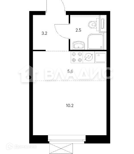 Общая площадь 21.6 м2