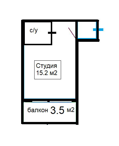 В продаже студия 15.2 кв.м. + бонус балкон.