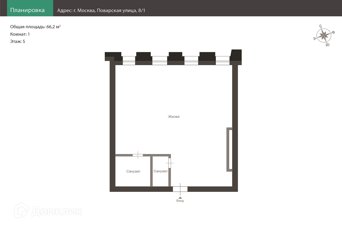 Общая площадь 66.2 м2