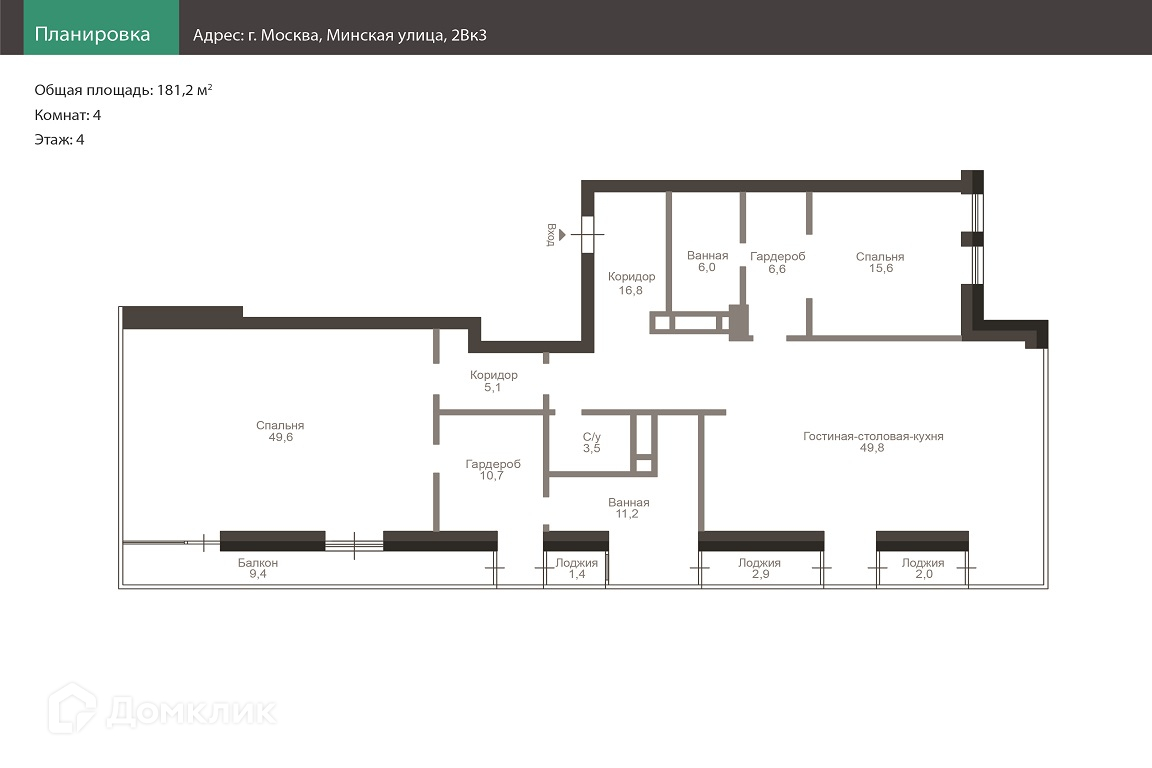 Общая площадь 190.6 м2