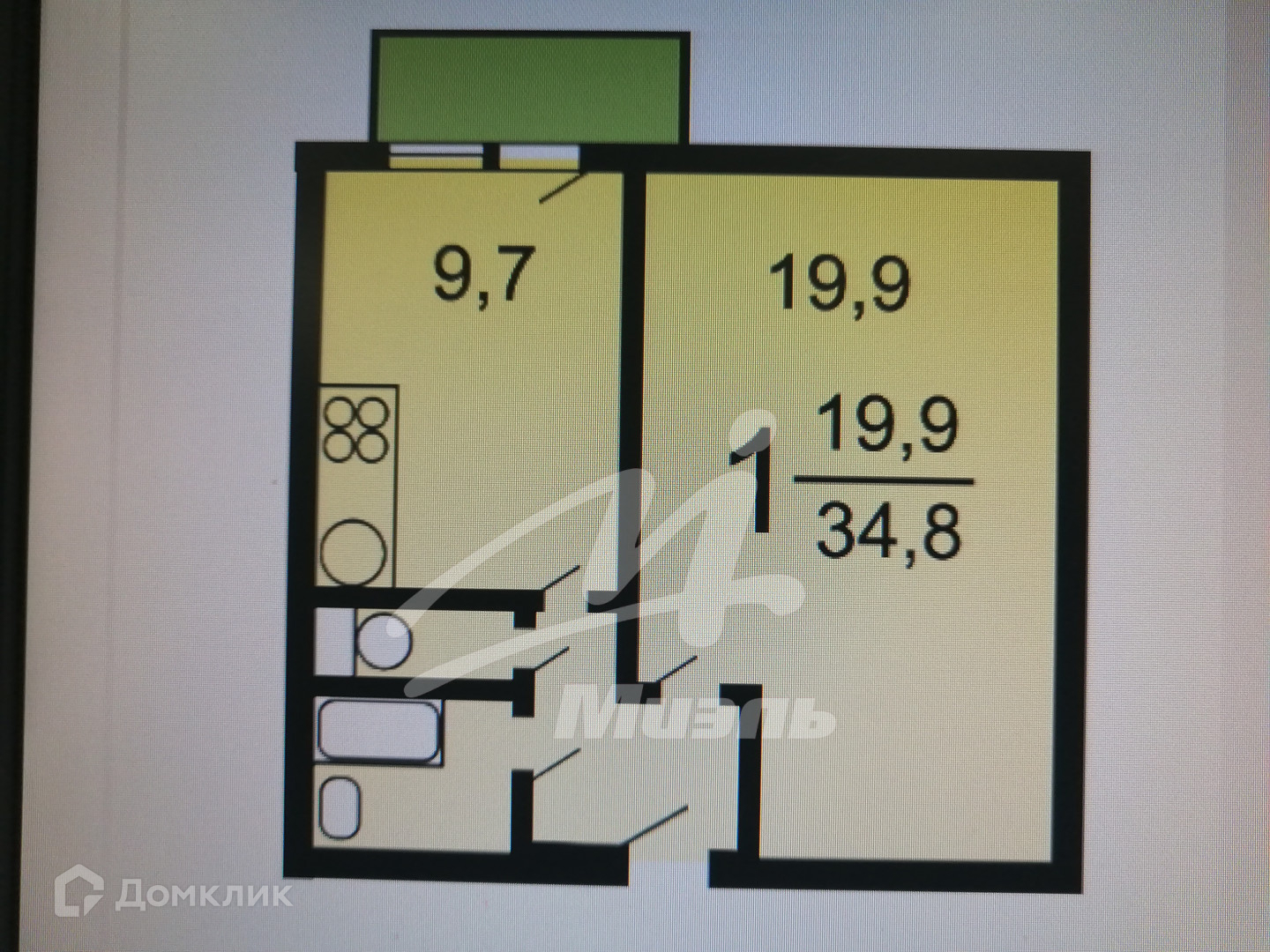 Жилая площадь 19.9 м2