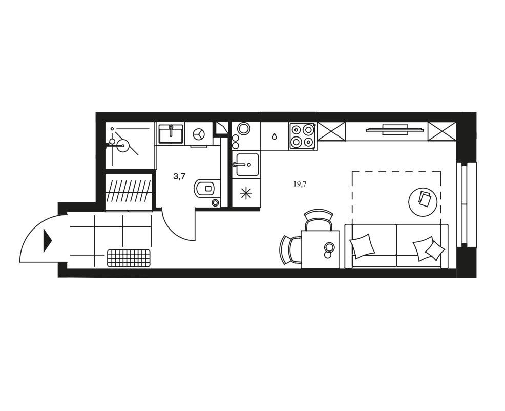 Жилая площадь 19.7 м2