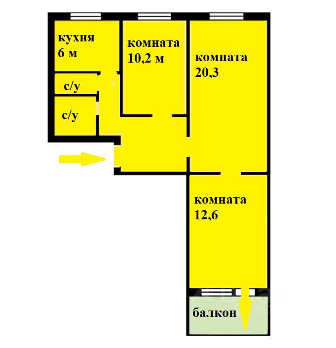 Балкон, лоджия 1 балкон