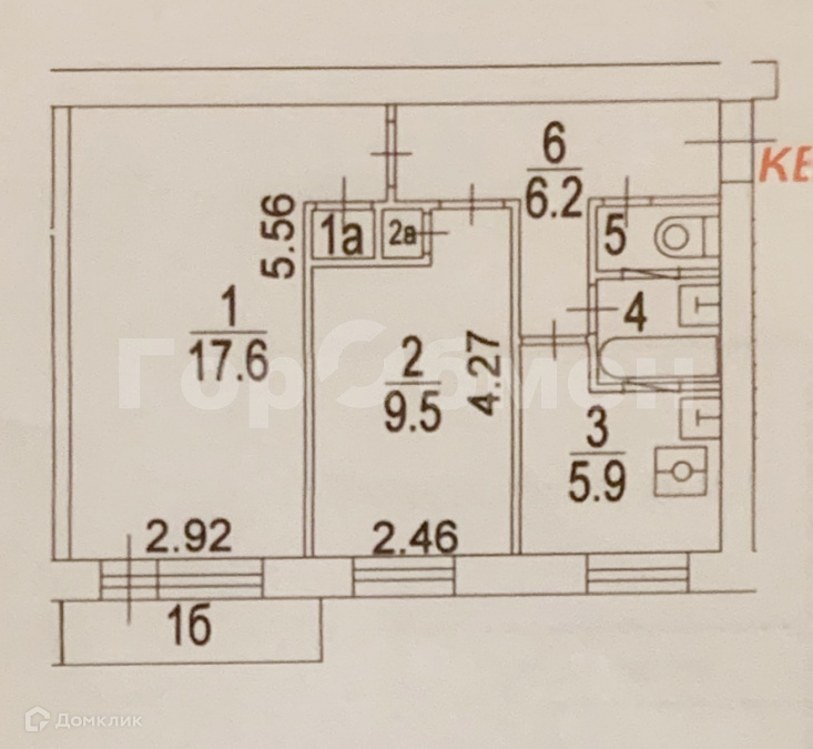 Жилая площадь 27.1 м2