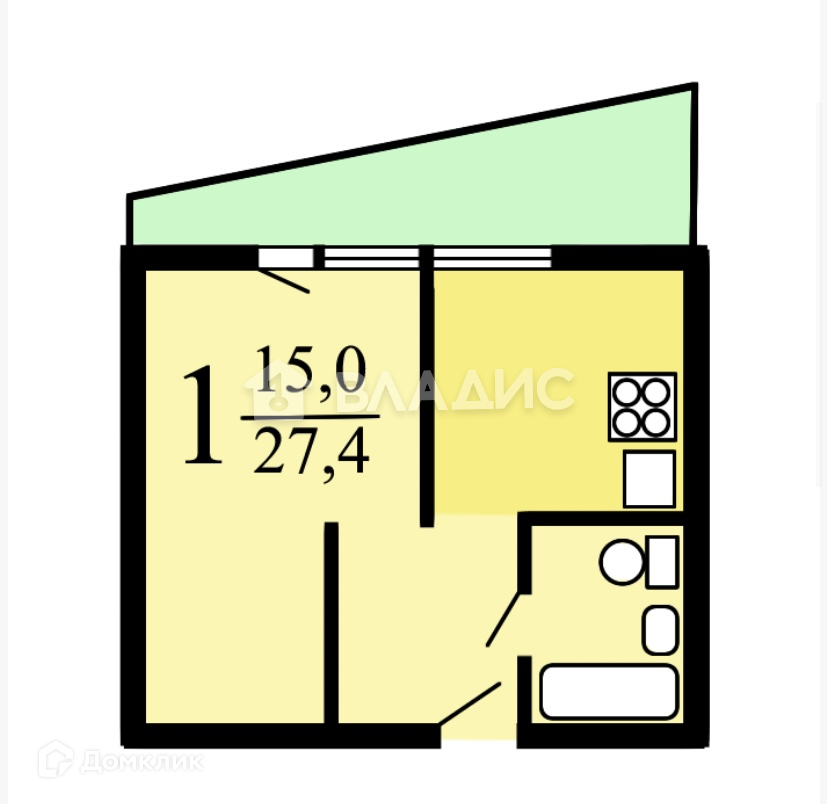 Общая площадь 27.4 м2