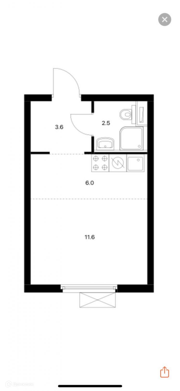 Общая площадь 23.7 м2