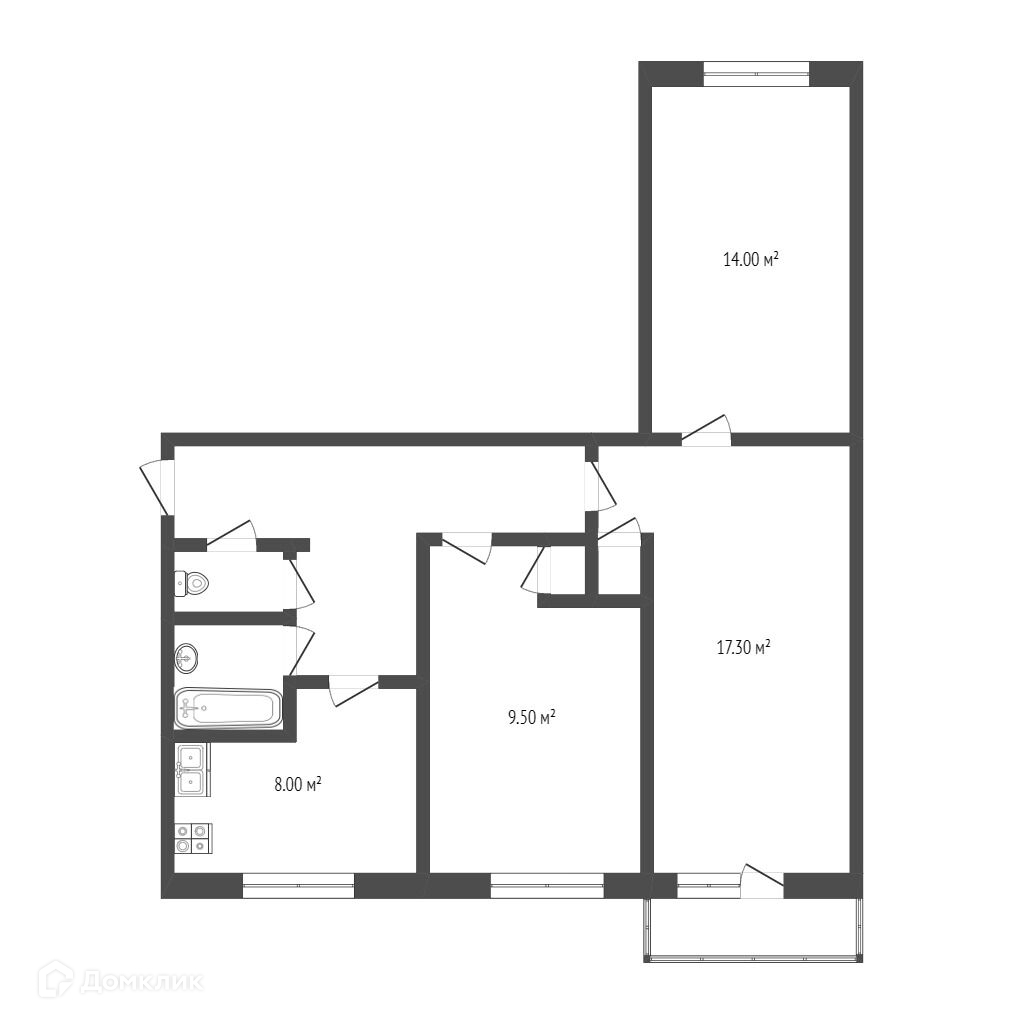 Общая площадь 55 м2