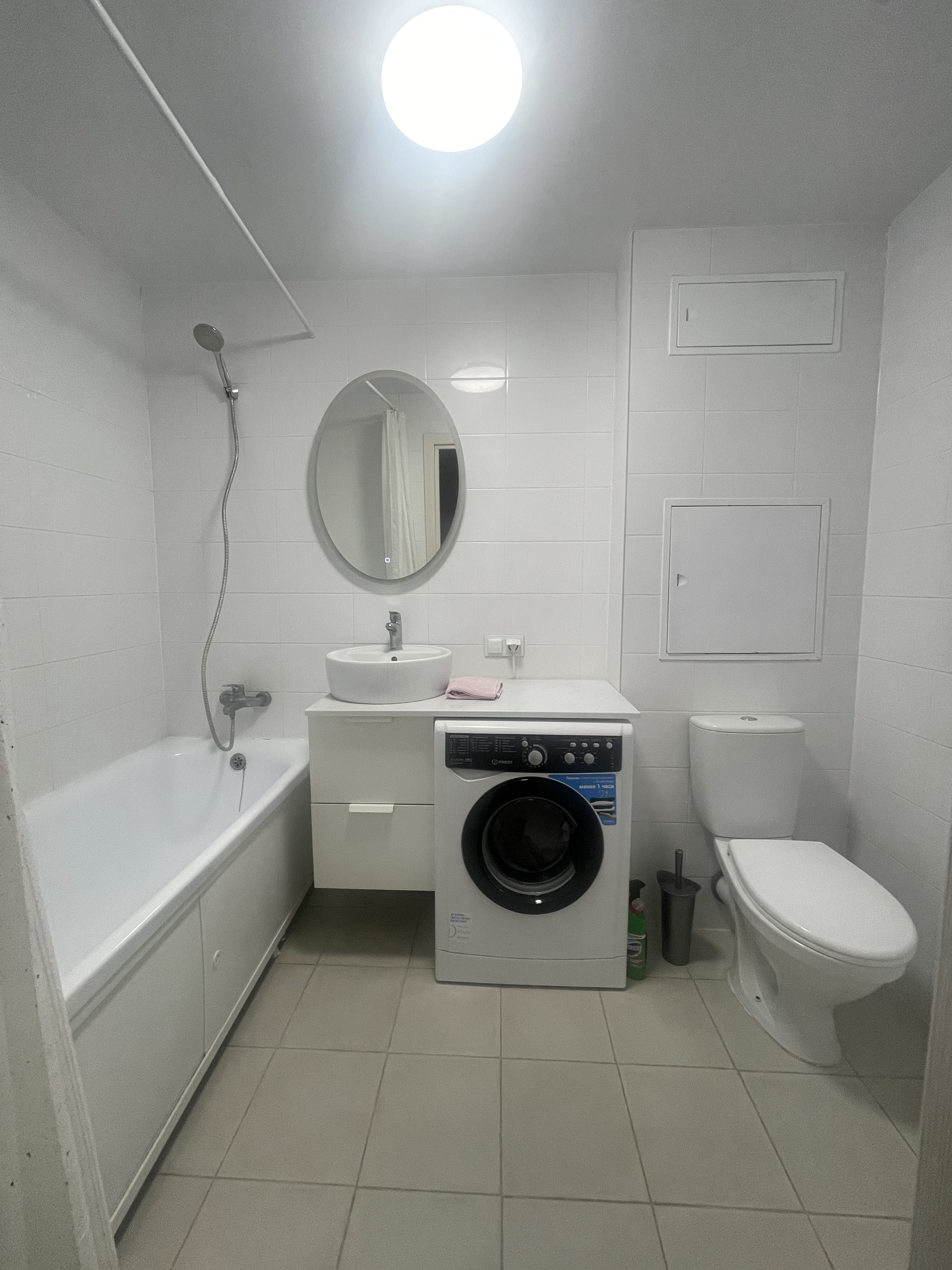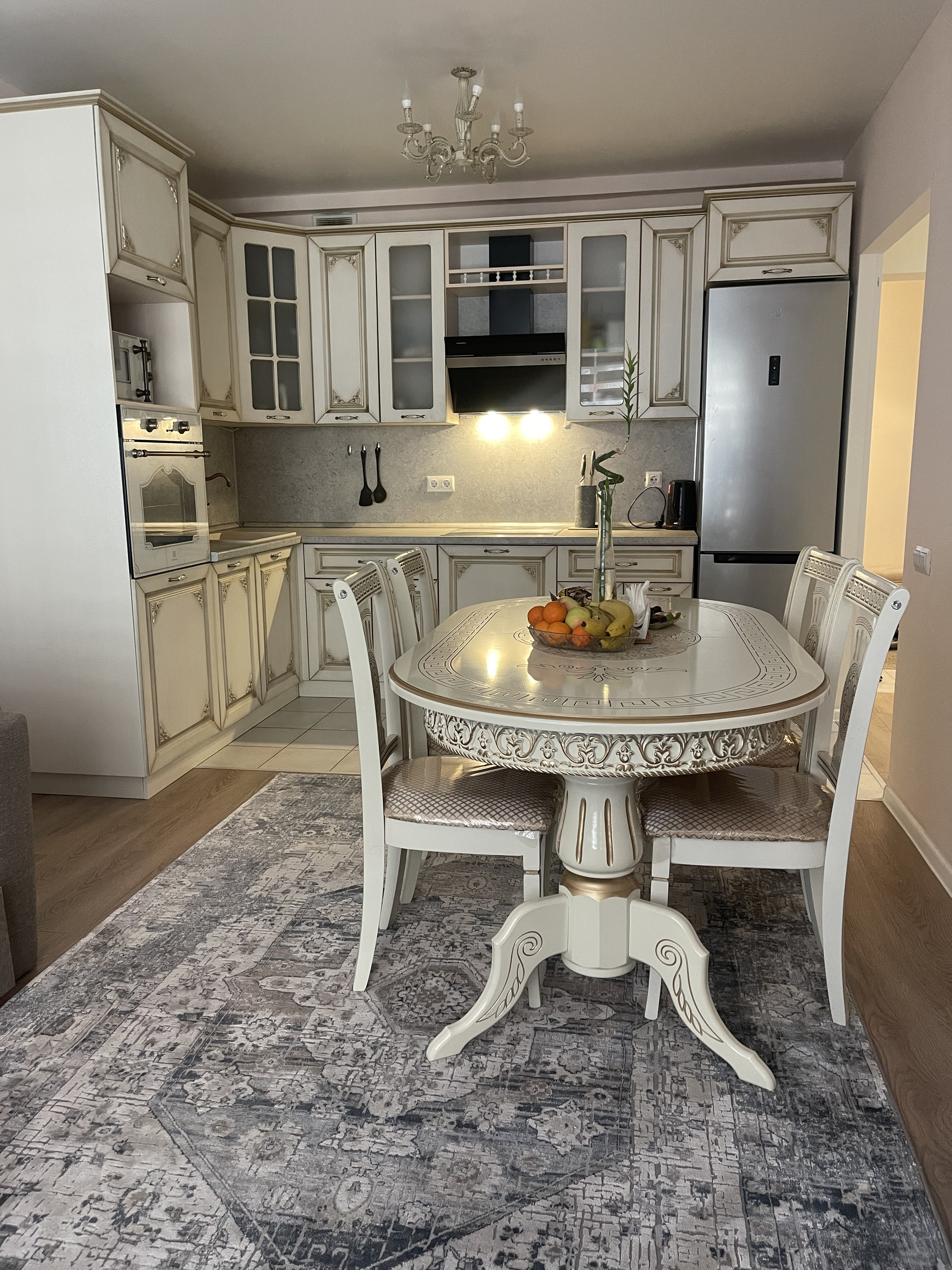 .Кухня выполнена на заказ,техника Electrolux. Сделан ремонт в маленьком санузеле