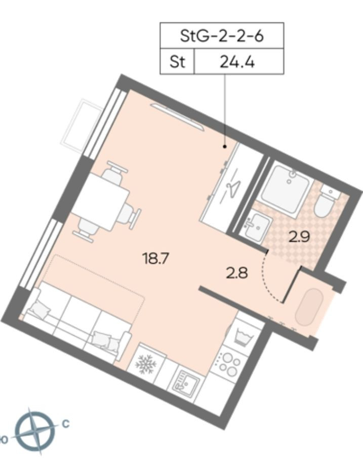 Общая площадь 24.4 м2