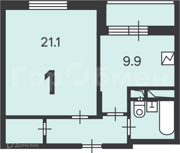 Жилая площадь 21.1 м2