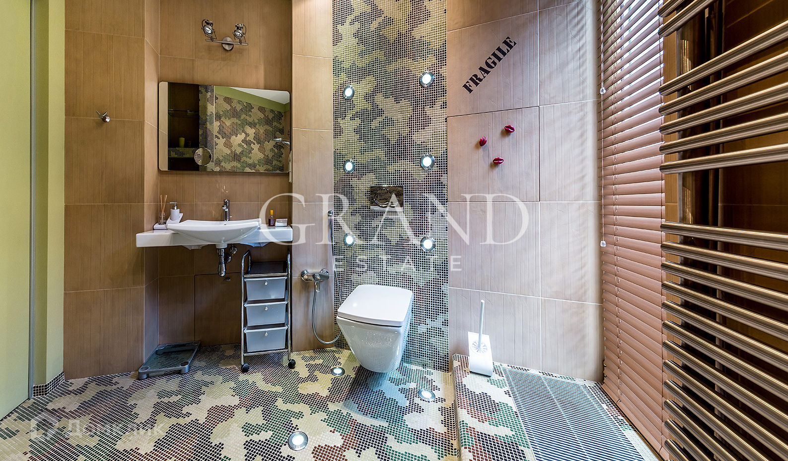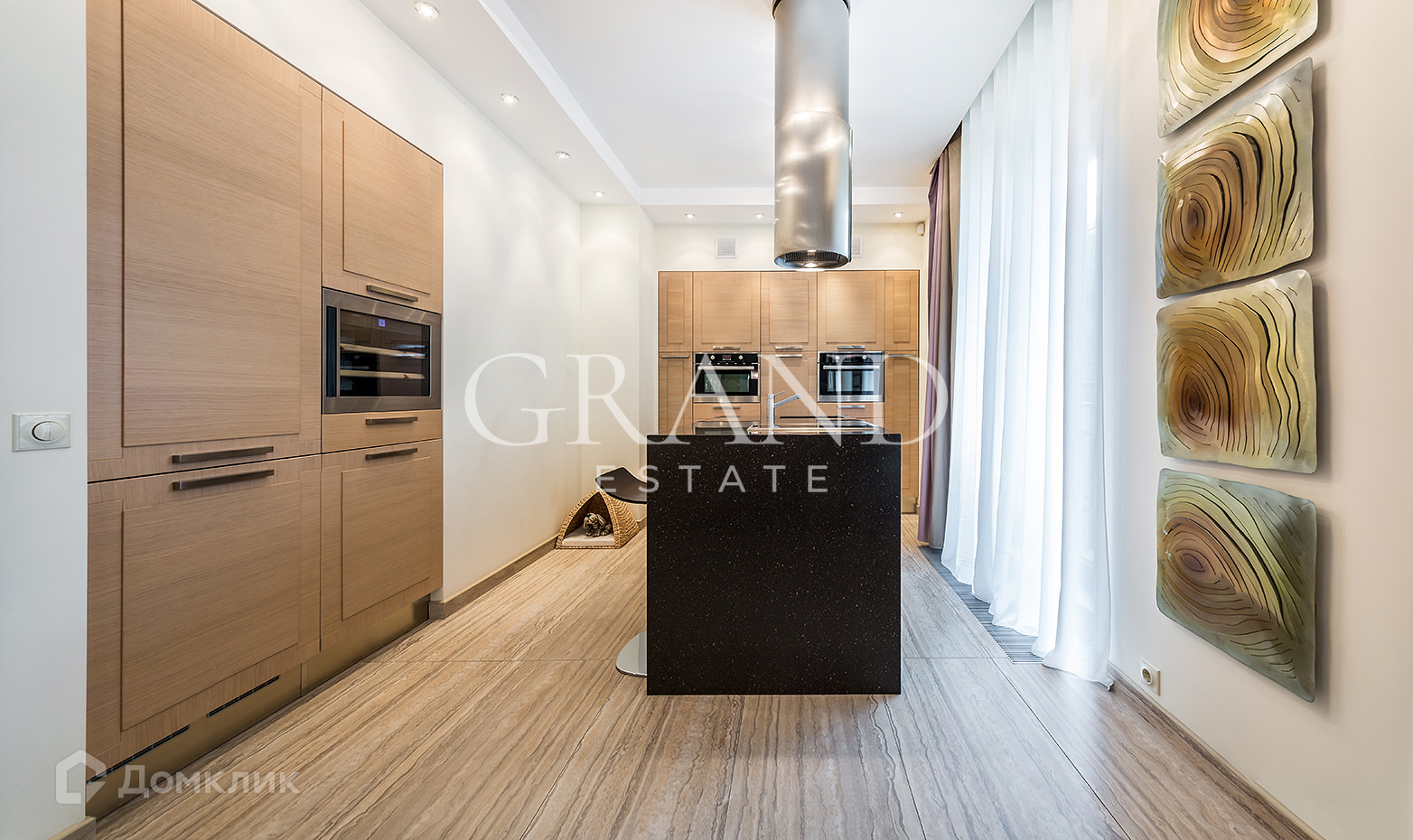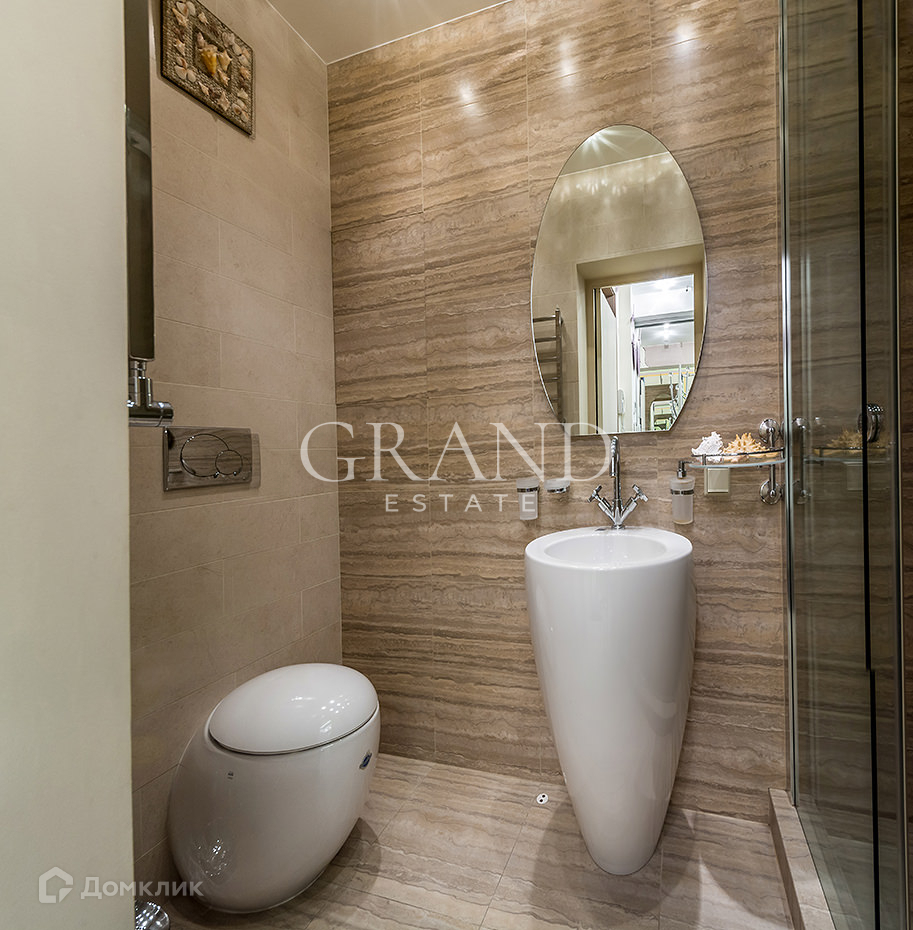 Выполнена качественная отделка с применением натуральных материалов: травертина, дерева, керамики.
