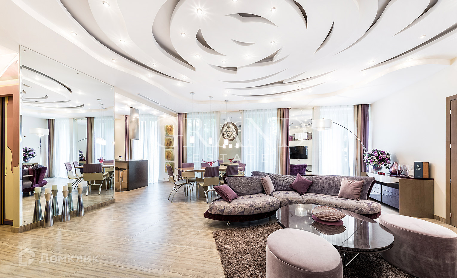 с выделенной столовой зоной, диванной группой,