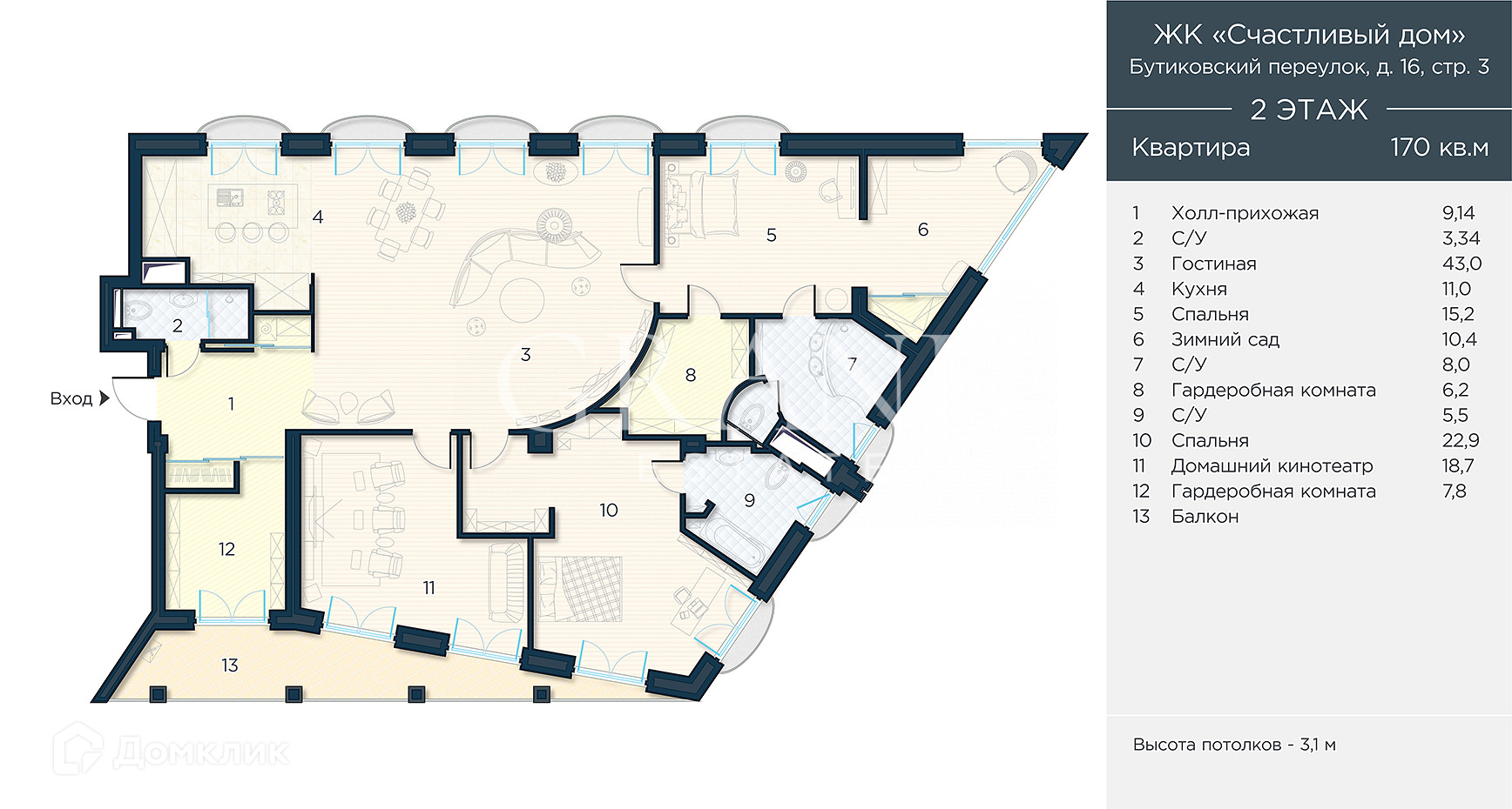 Общая площадь 170 м2