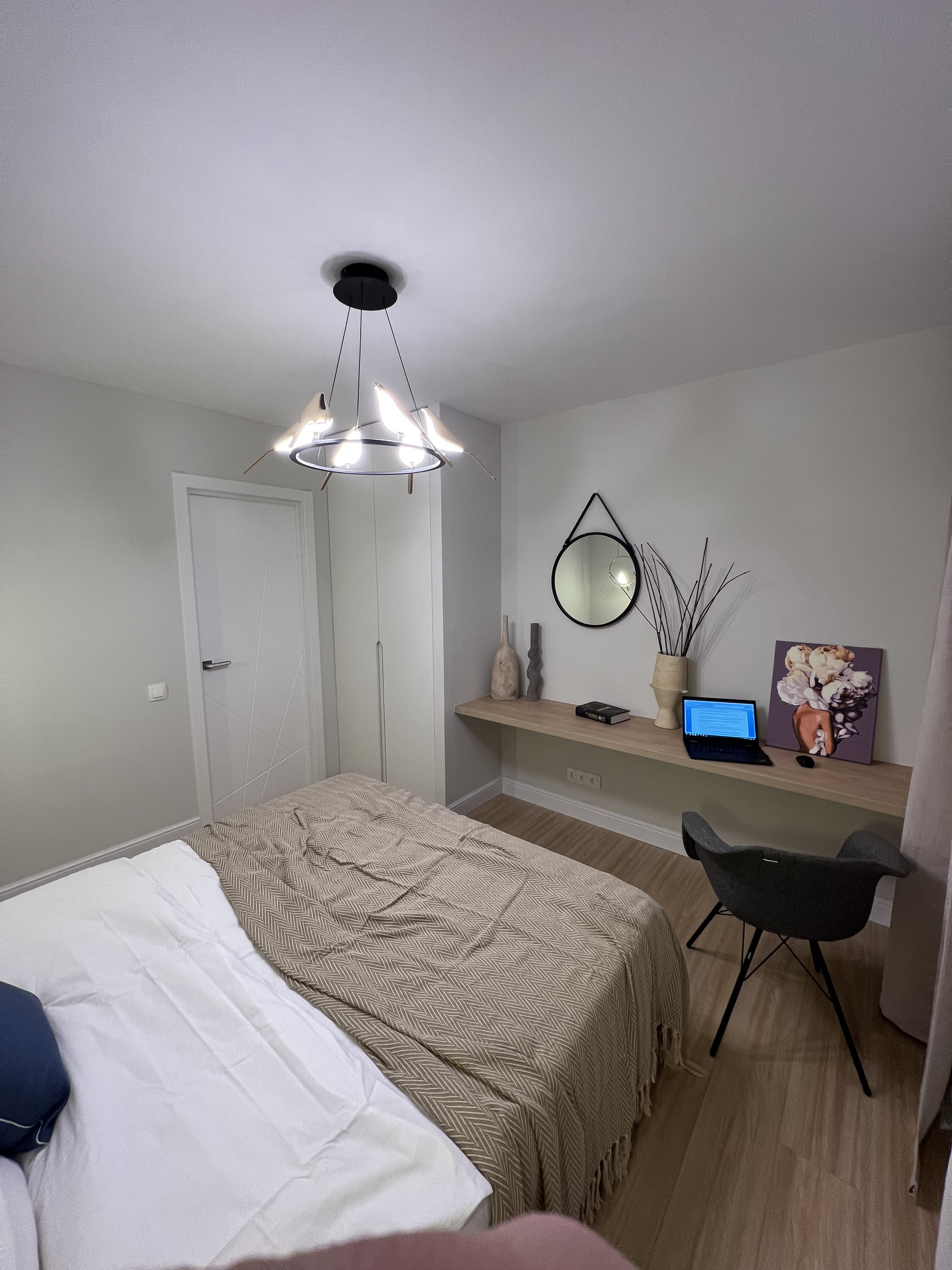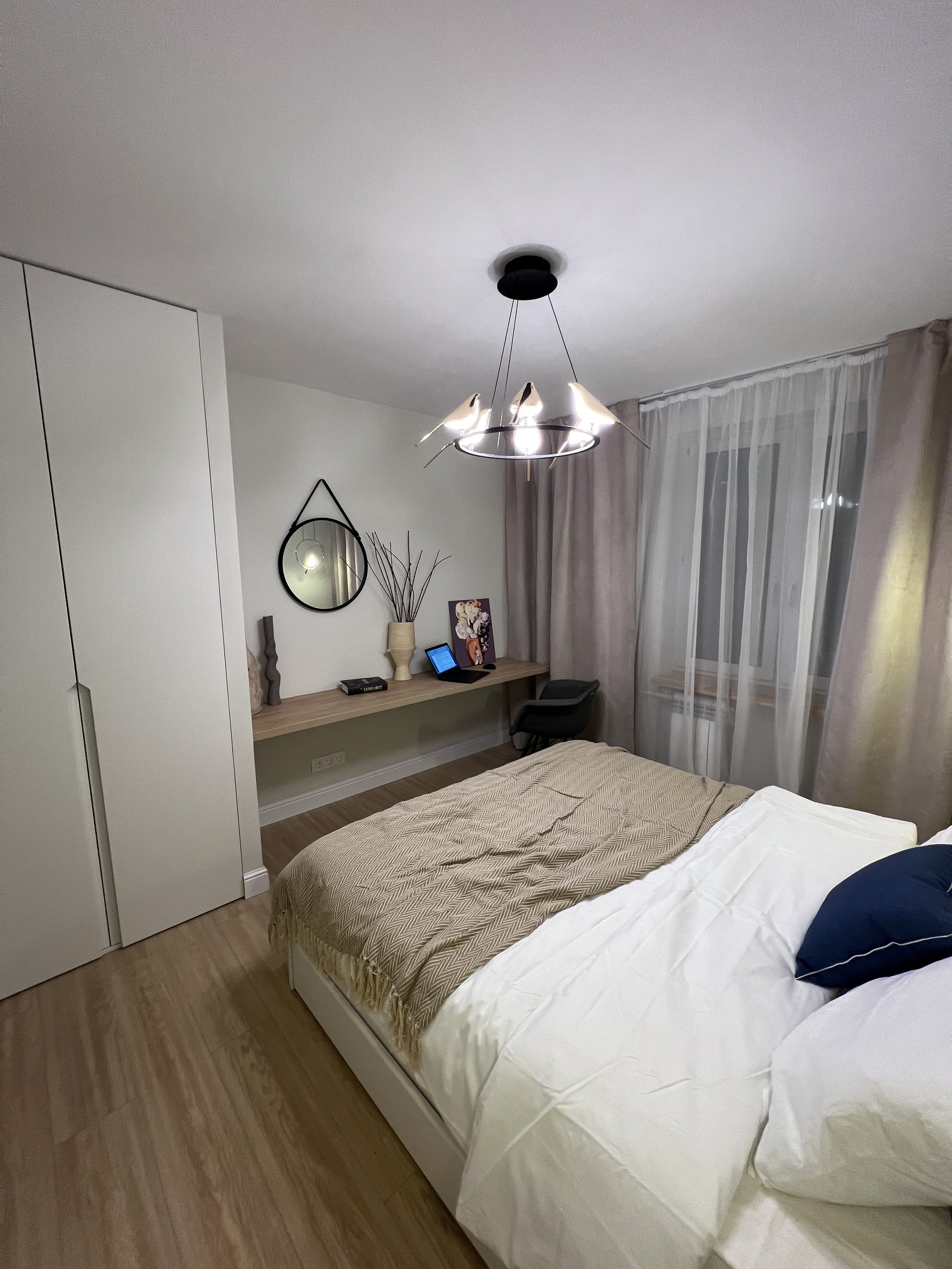Мастер-спальня с чудесными птичками площадью 11.5 метров. Отдельный шкаф с комодом.