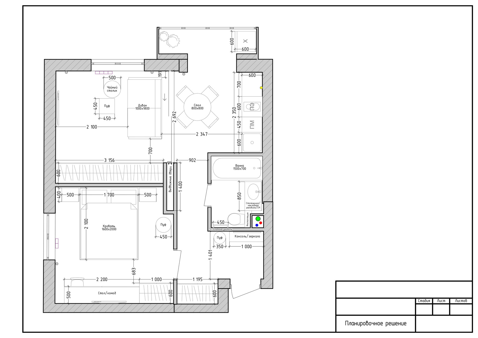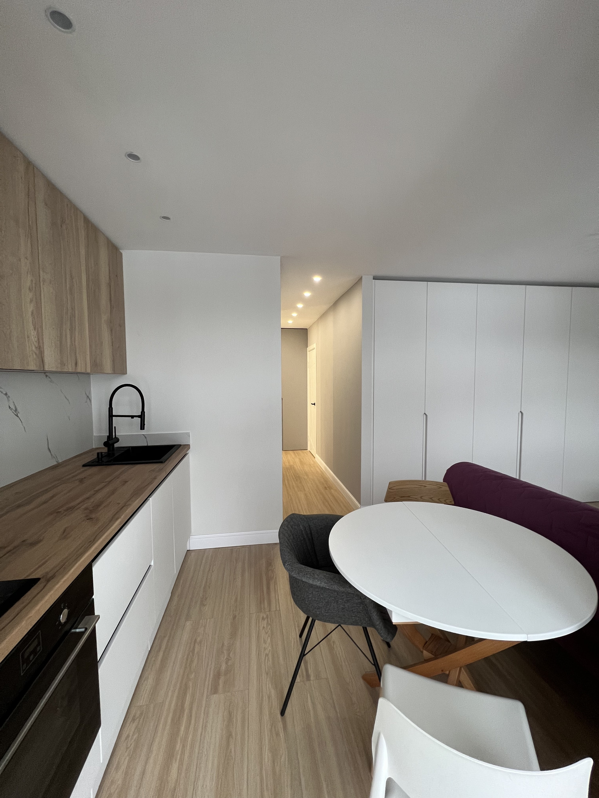 Гостиная или детская отделяемая от кухни раздвижной перегородкой (устанавливается 10 марта) площадью 11.6 метров. Вместительный и стильный шкаф во всю стену.
