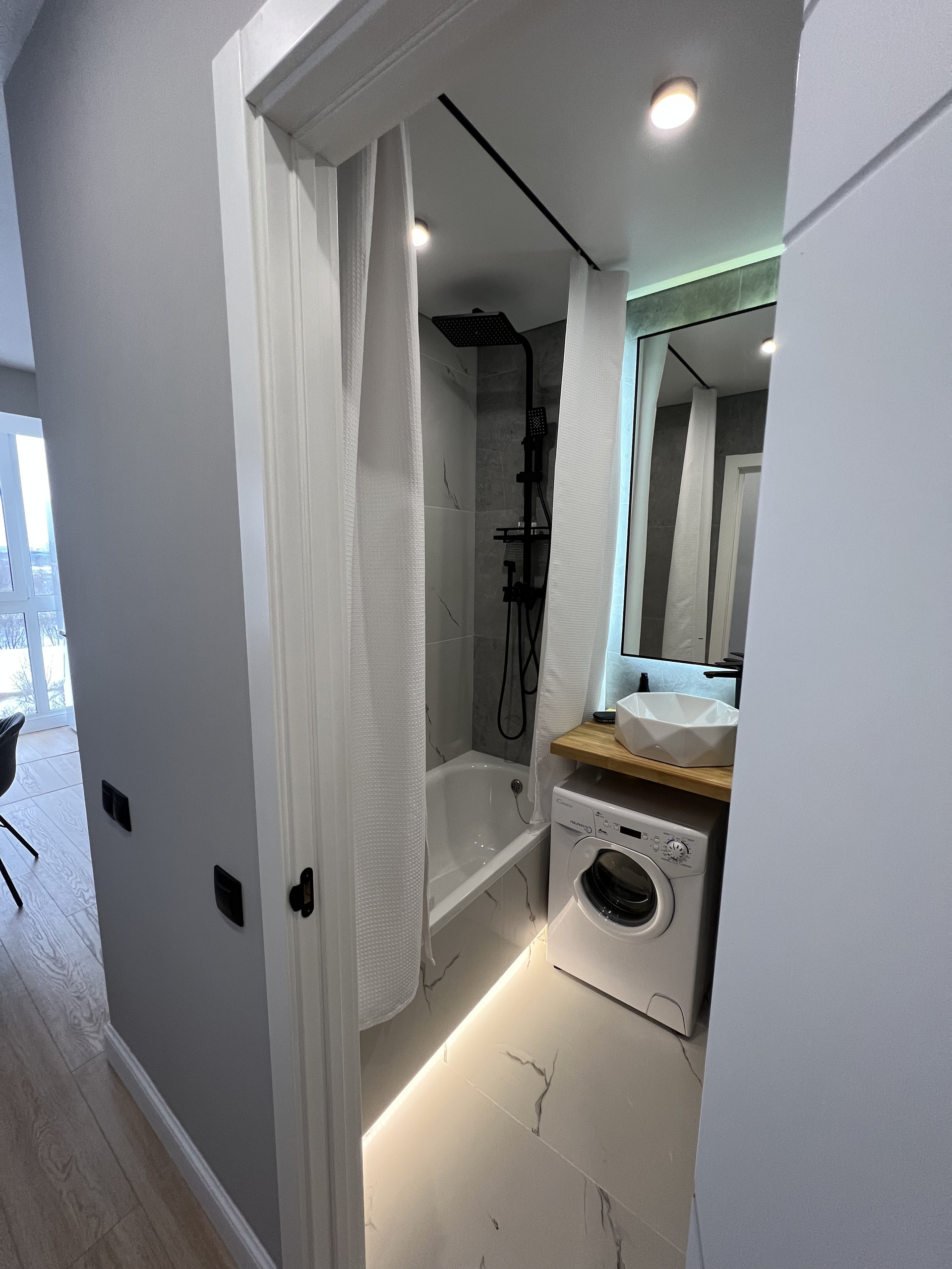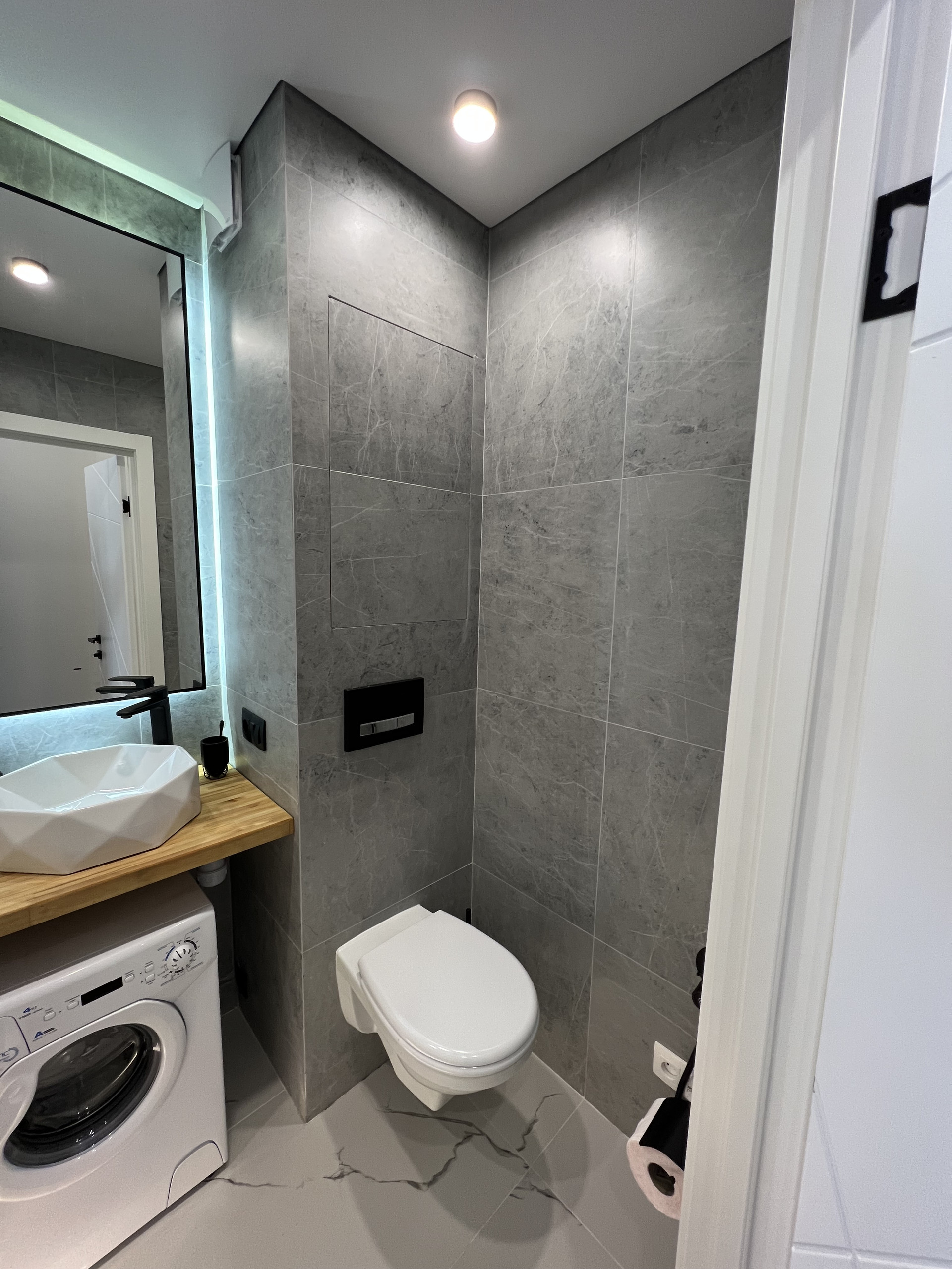 Совмещенный санузел с теплым полом и теплой стеной вместо полотенцесушителя!