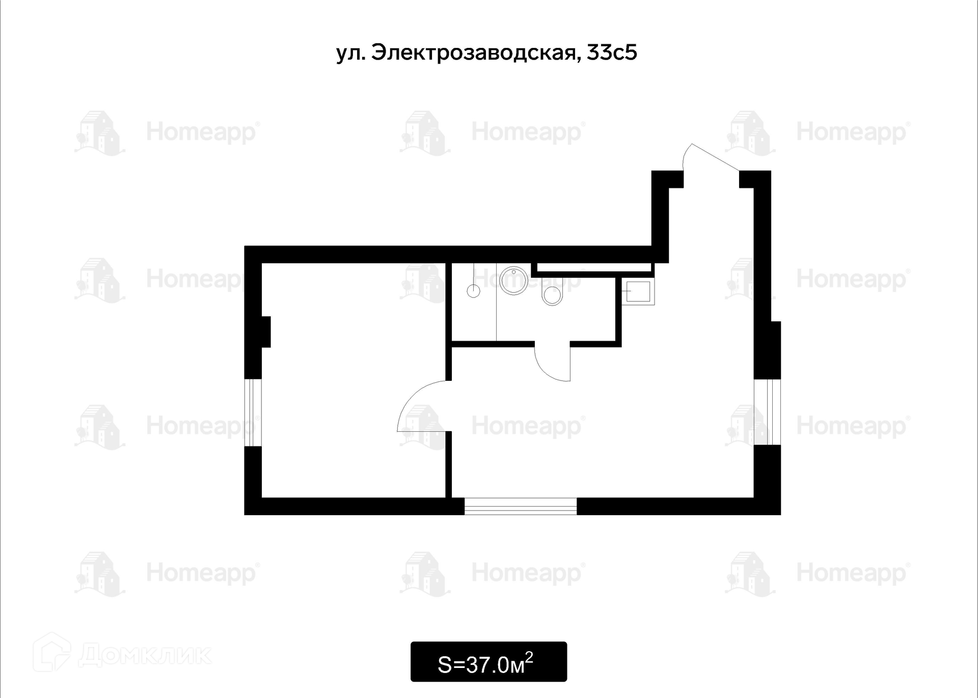 Общая площадь 37 м2