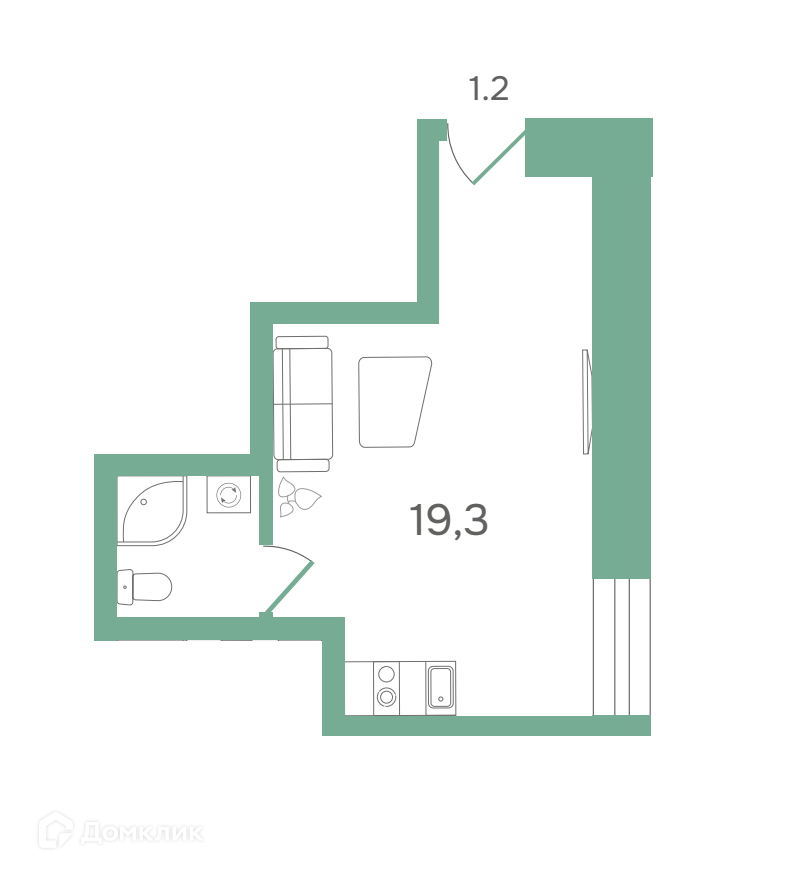 Общая площадь: 19,3 м²