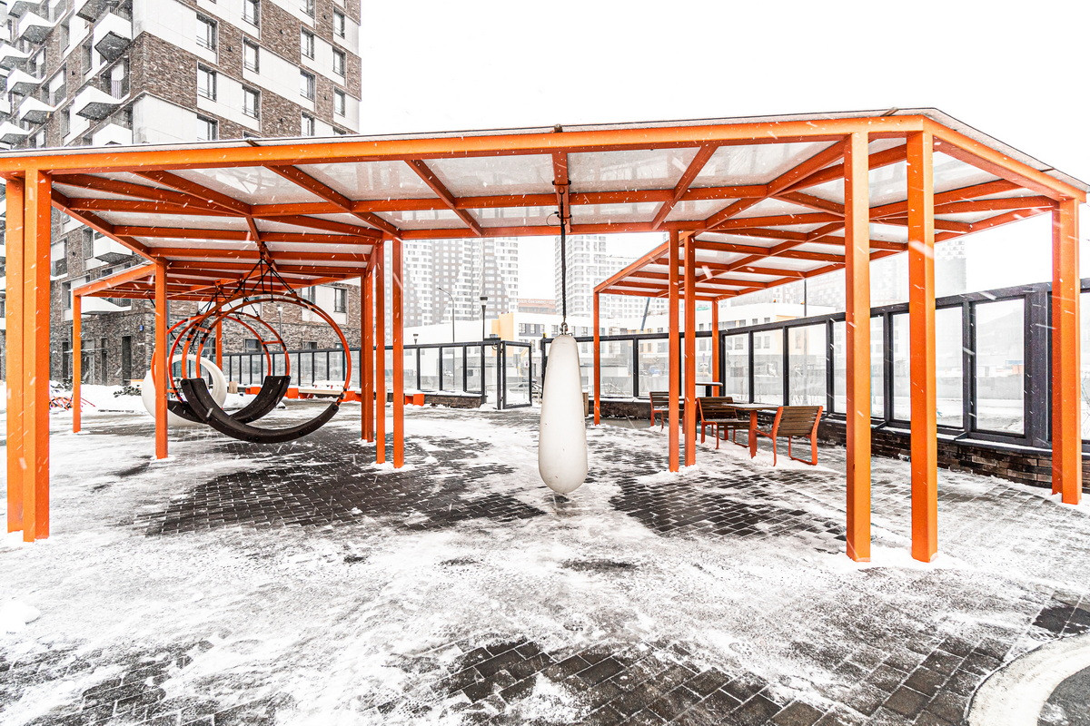 Просторные дворы-парки свободны от машин, закрыты для посторонних, оборудованы системами видеонаблюдения и охраняются. Зеленые холмы, прогулочные дорожки, зоны отдыха, детские игровые площадки, воркауты здесь будет интересно жителям всех возрастов.