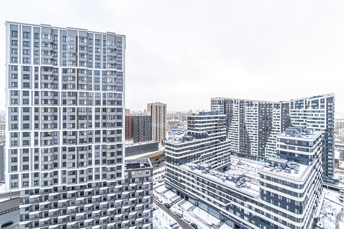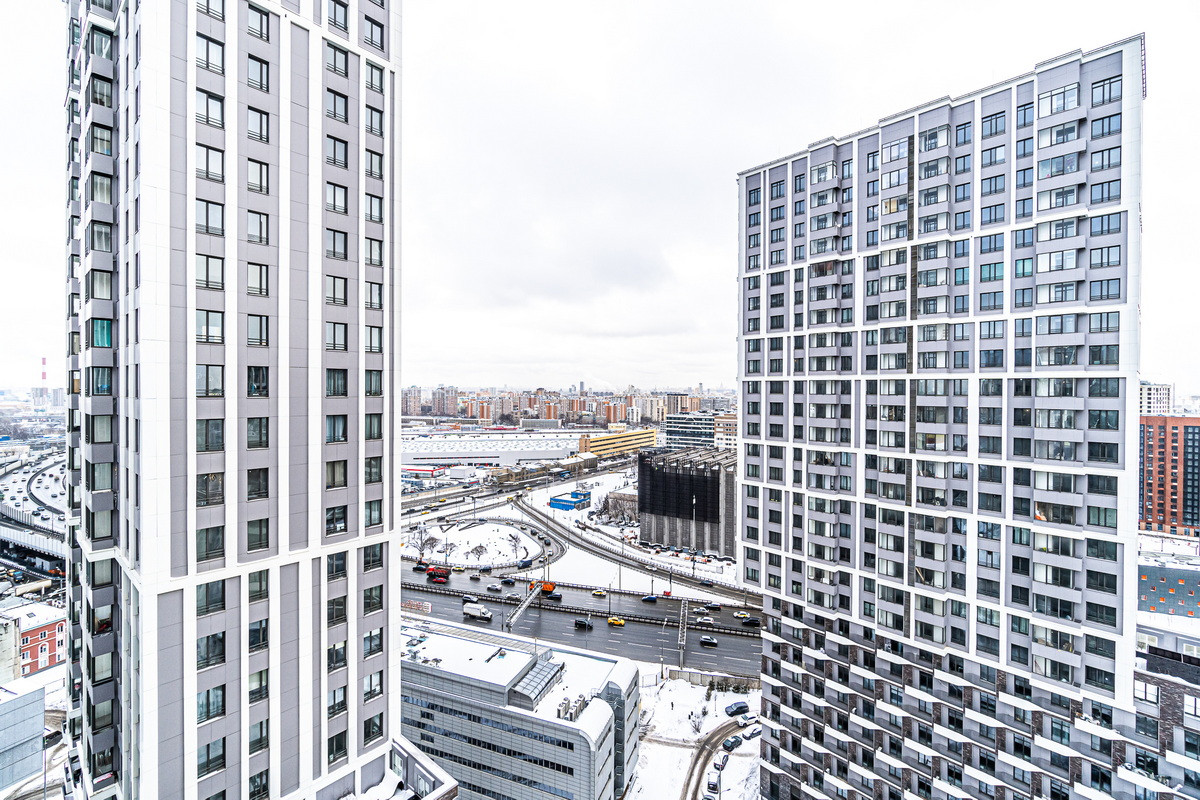 Потрясающий вид из окна в сторону Павелецкого вокзала, на благоустроенный двор и огни ночной Москвы.