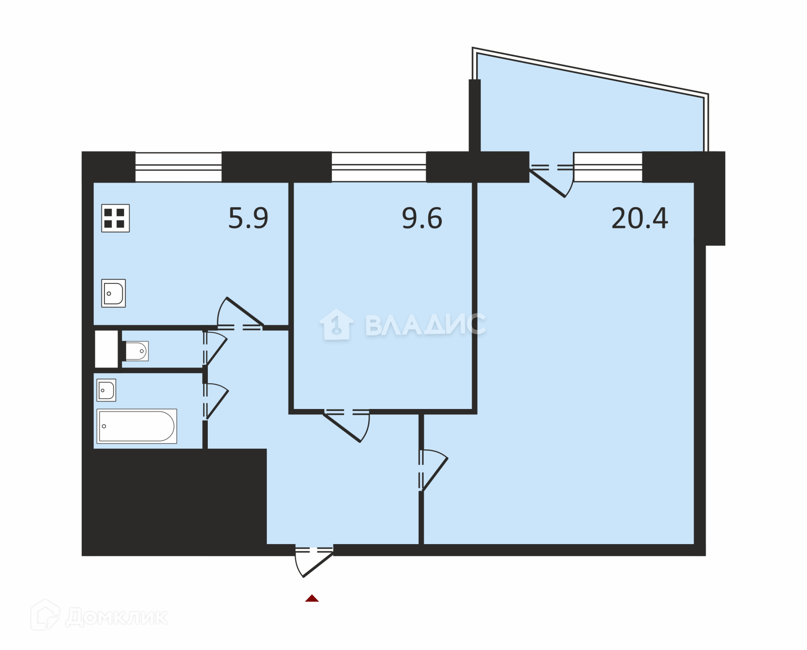 Общая площадь 45.6 м2