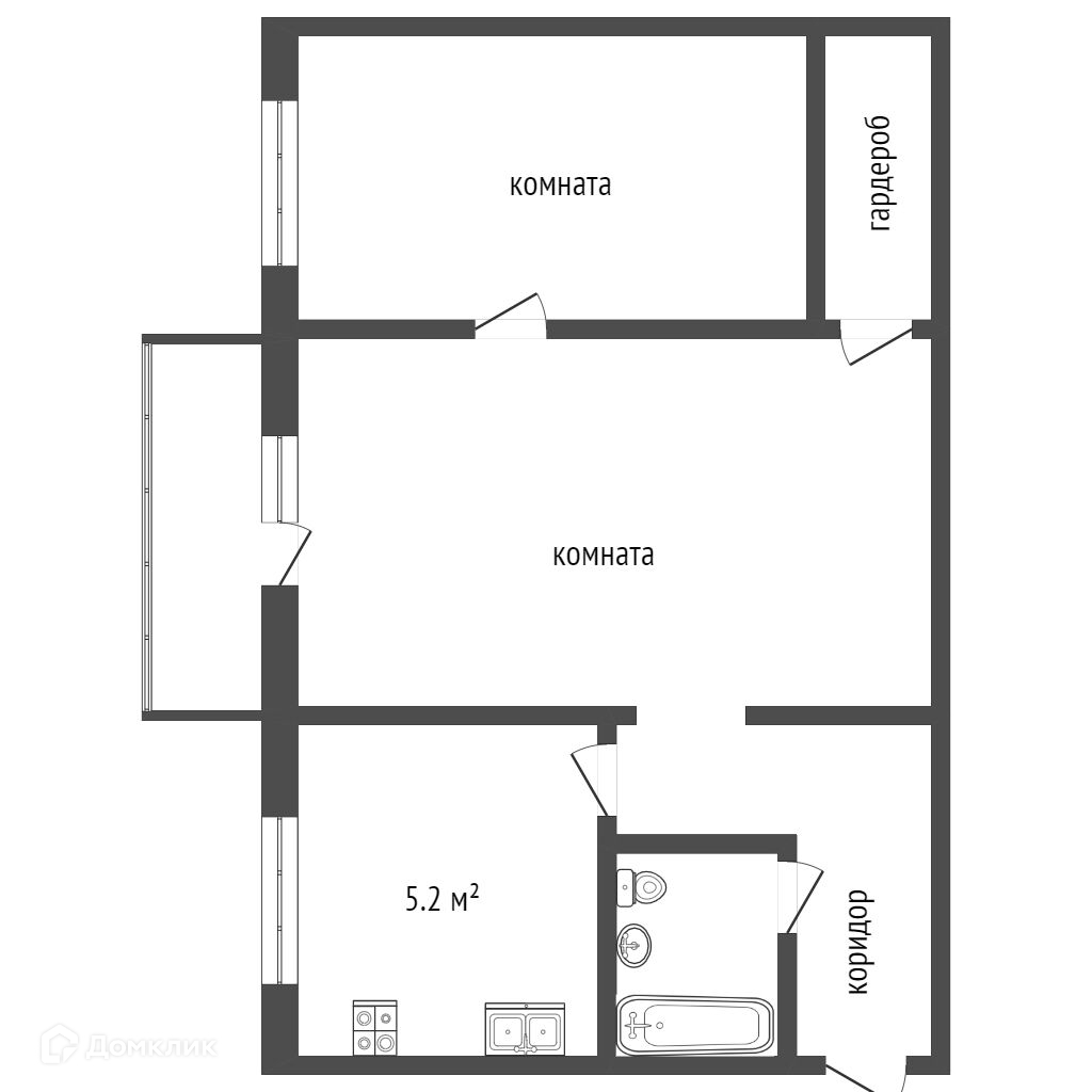 Общая площадь 44 м2