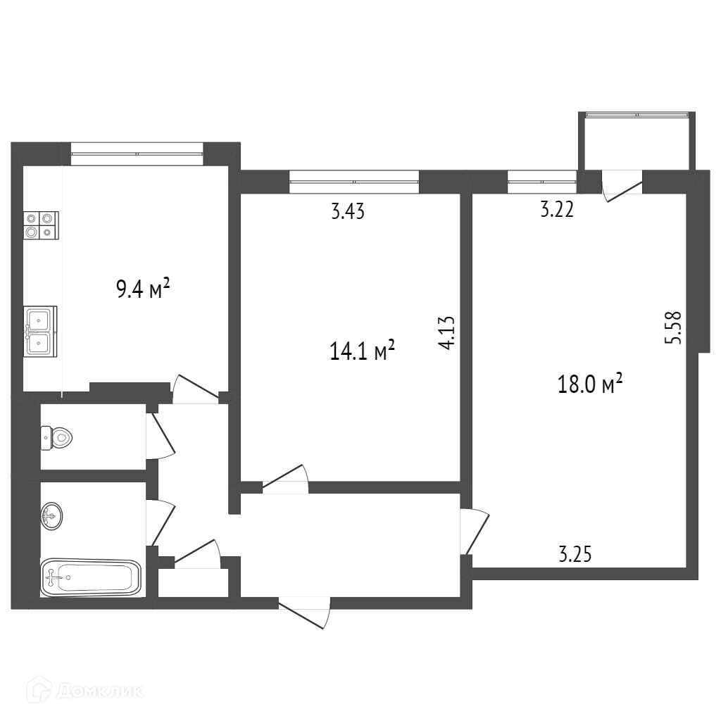 Общая площадь 55 м2