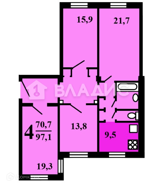 Общая площадь 97.1 м2