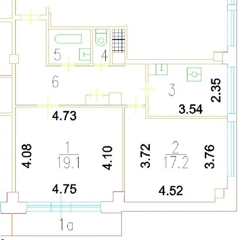 Общая площадь 58.4 м2