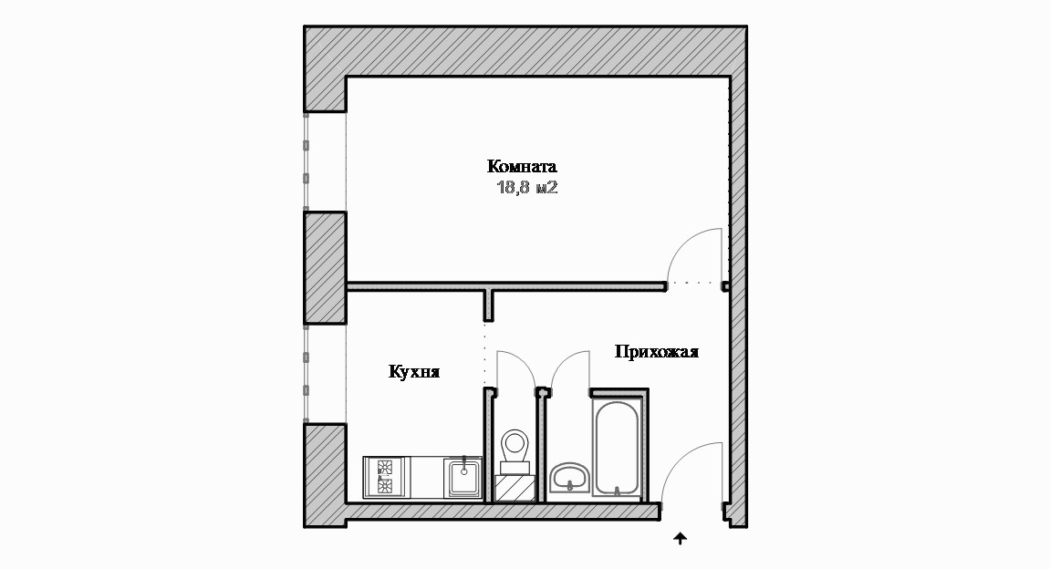 Жилая площадь 18.8 м2