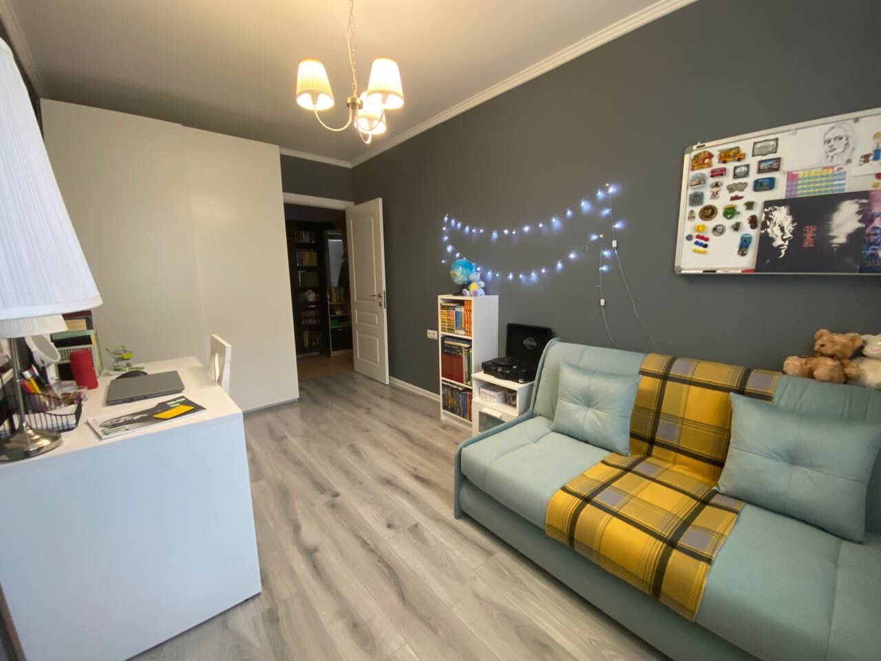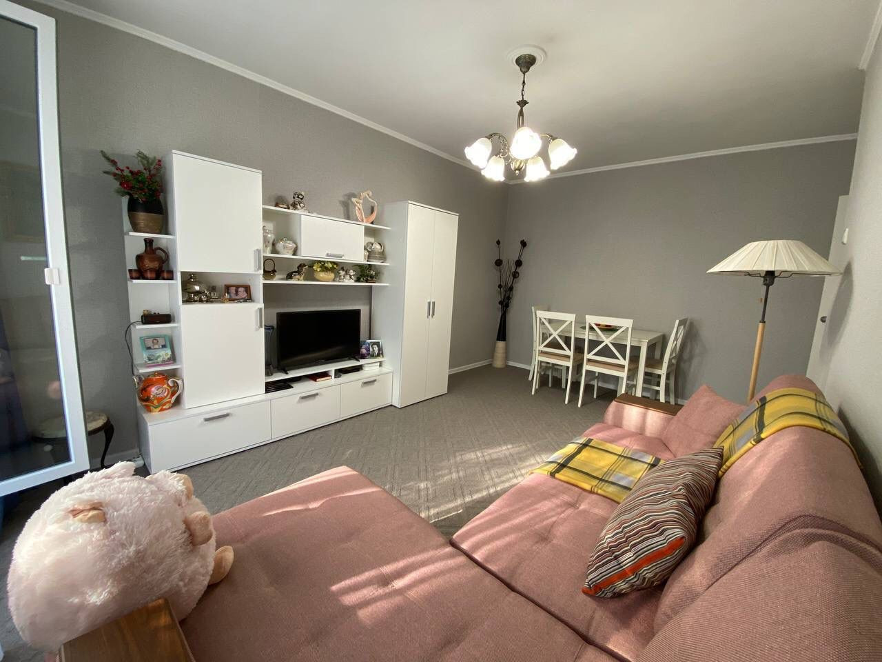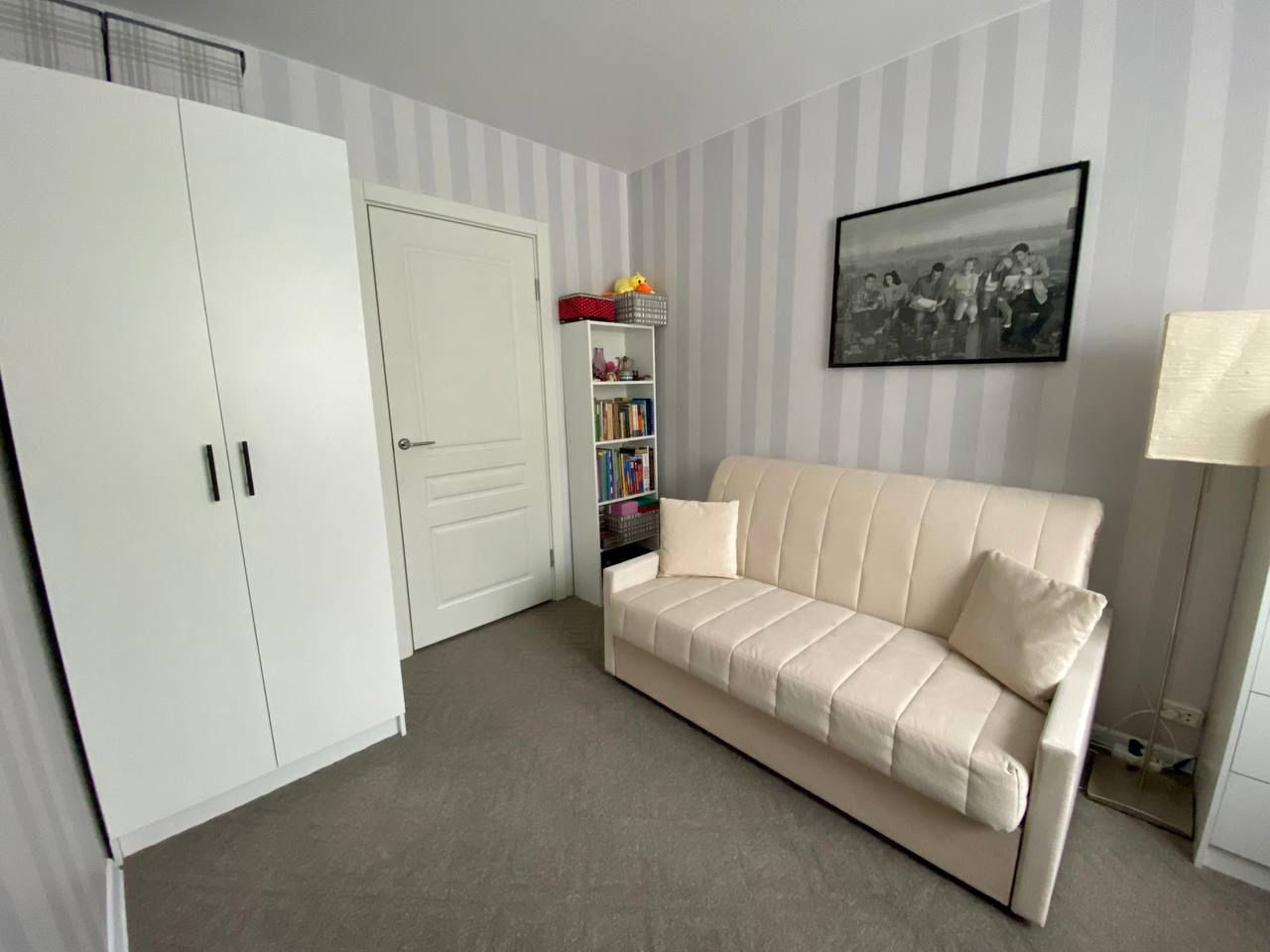 Площадь квартиры — 57 м2, все три комнаты (17 + 12 + 9 м2) изолированные. Из большой комнаты выход на огромный балкон площадью 5,6 м2. Во всей квартире установлены новые стеклопакеты и батареи, выполнен качественный ремонт. Кухонный гарнитур с плитой, встроенной посудомоечной машиной и кондиционеры остаются покупателю.