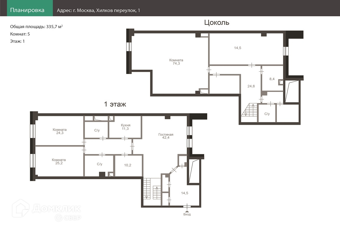 Общая площадь 335.7 м2