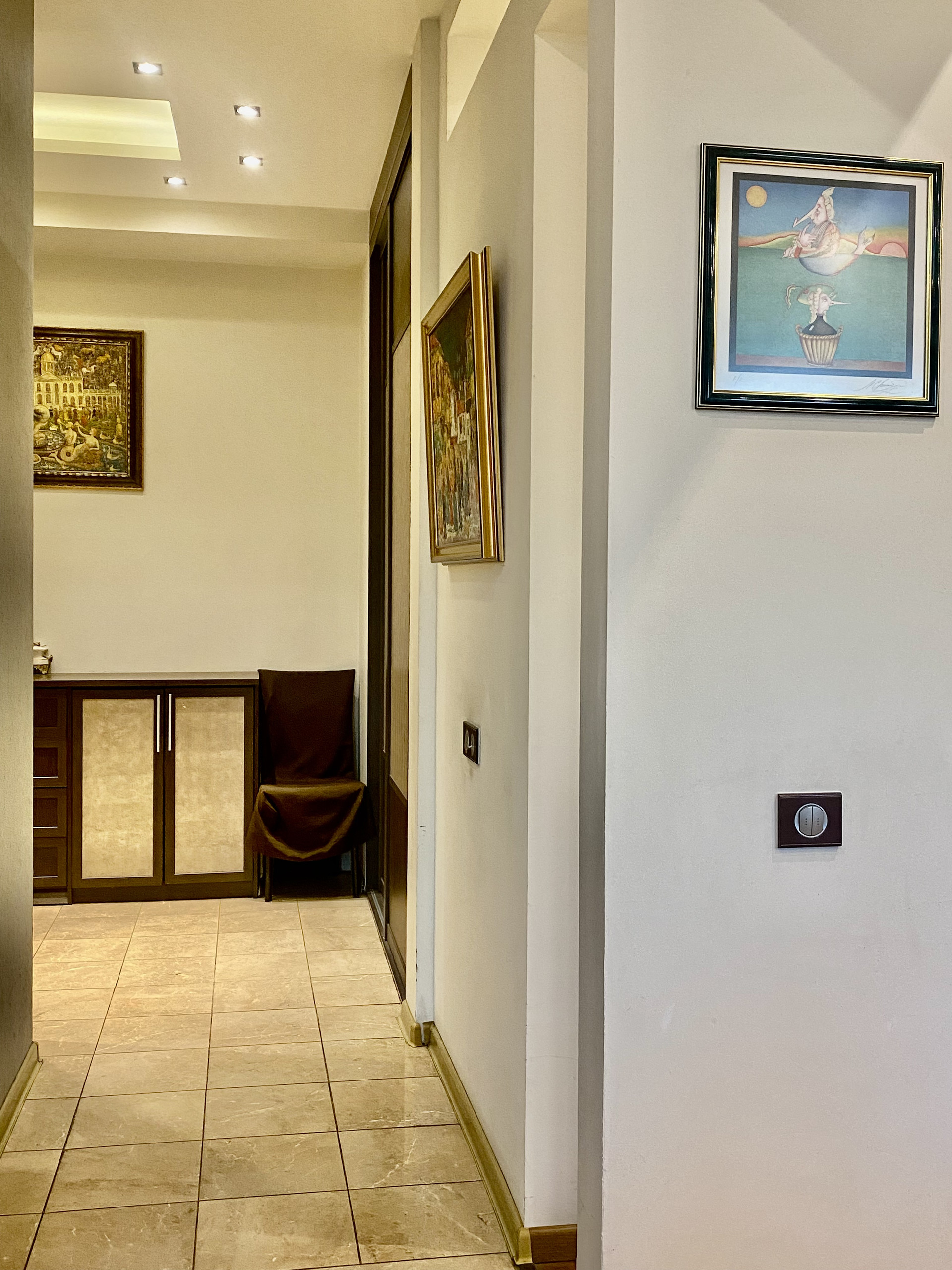 - Потолки - 3 метра, Полы - паркетная доска. На кухне, в коридоре и на одной из лоджий - испанский камень. Теплые полы на кухне и в двух ванных комнатах