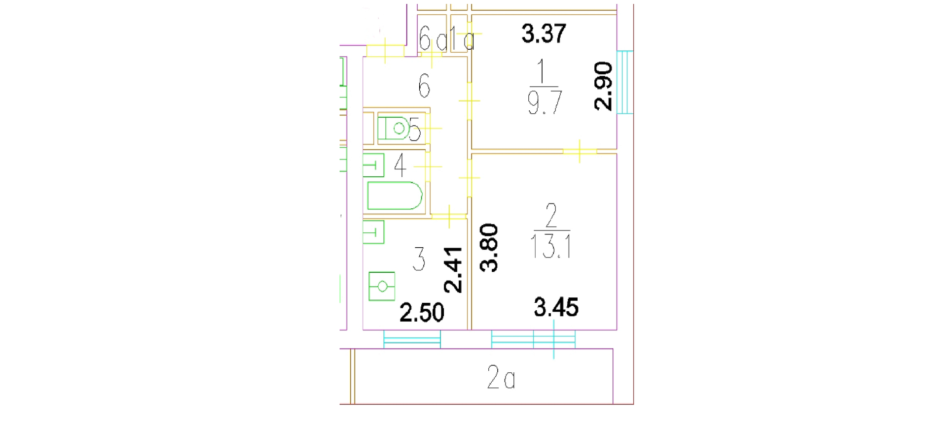 Общая площадь 38.3 м2