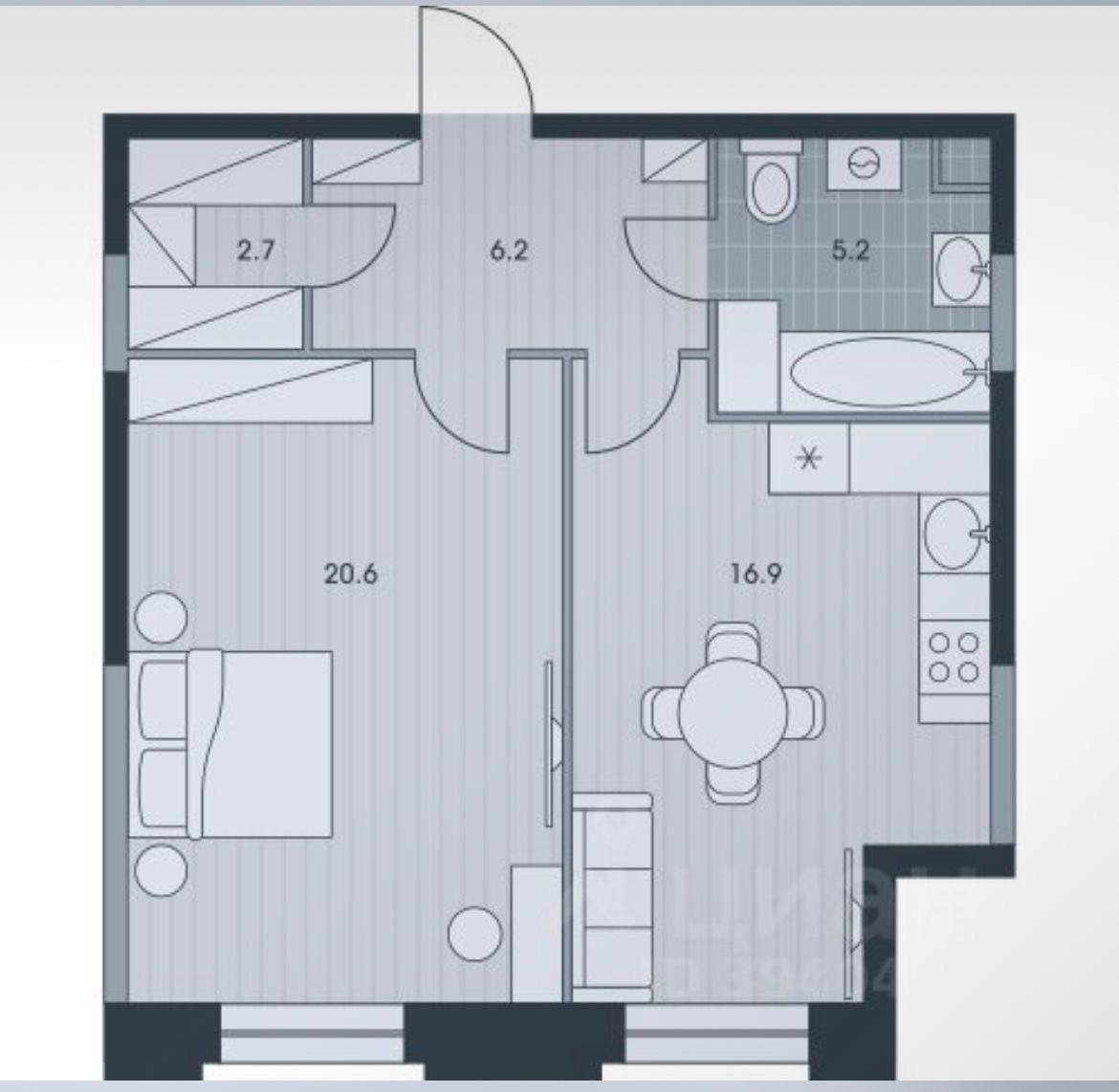Общая площадь 51.6 м2