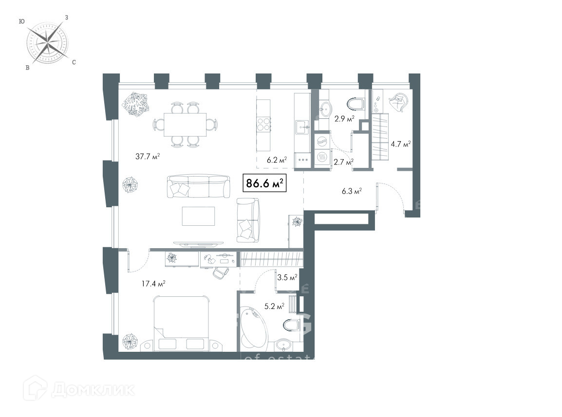 Общая площадь 86 м2