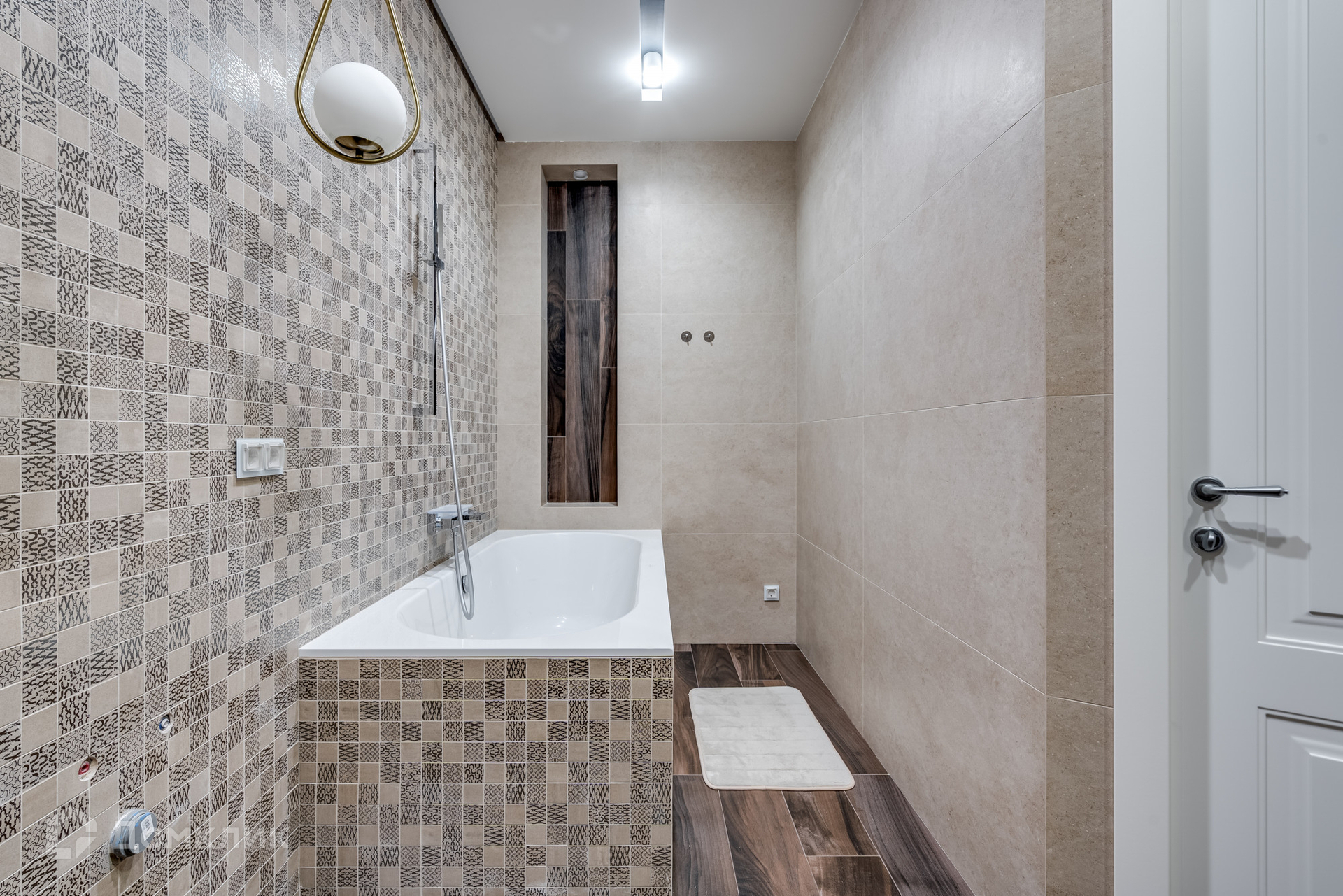 - Основная площадь пола, качественный паркет, мокрые зоны широкоформатный керамогранит.