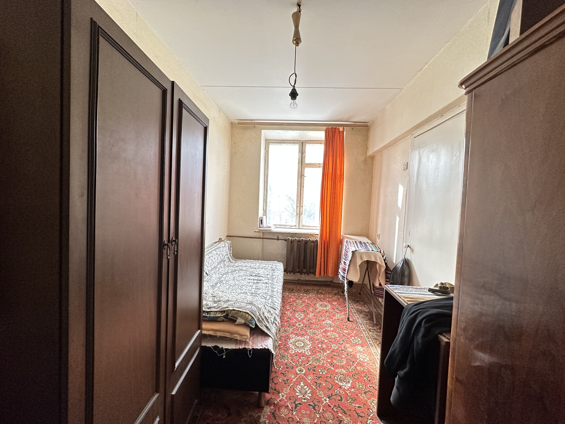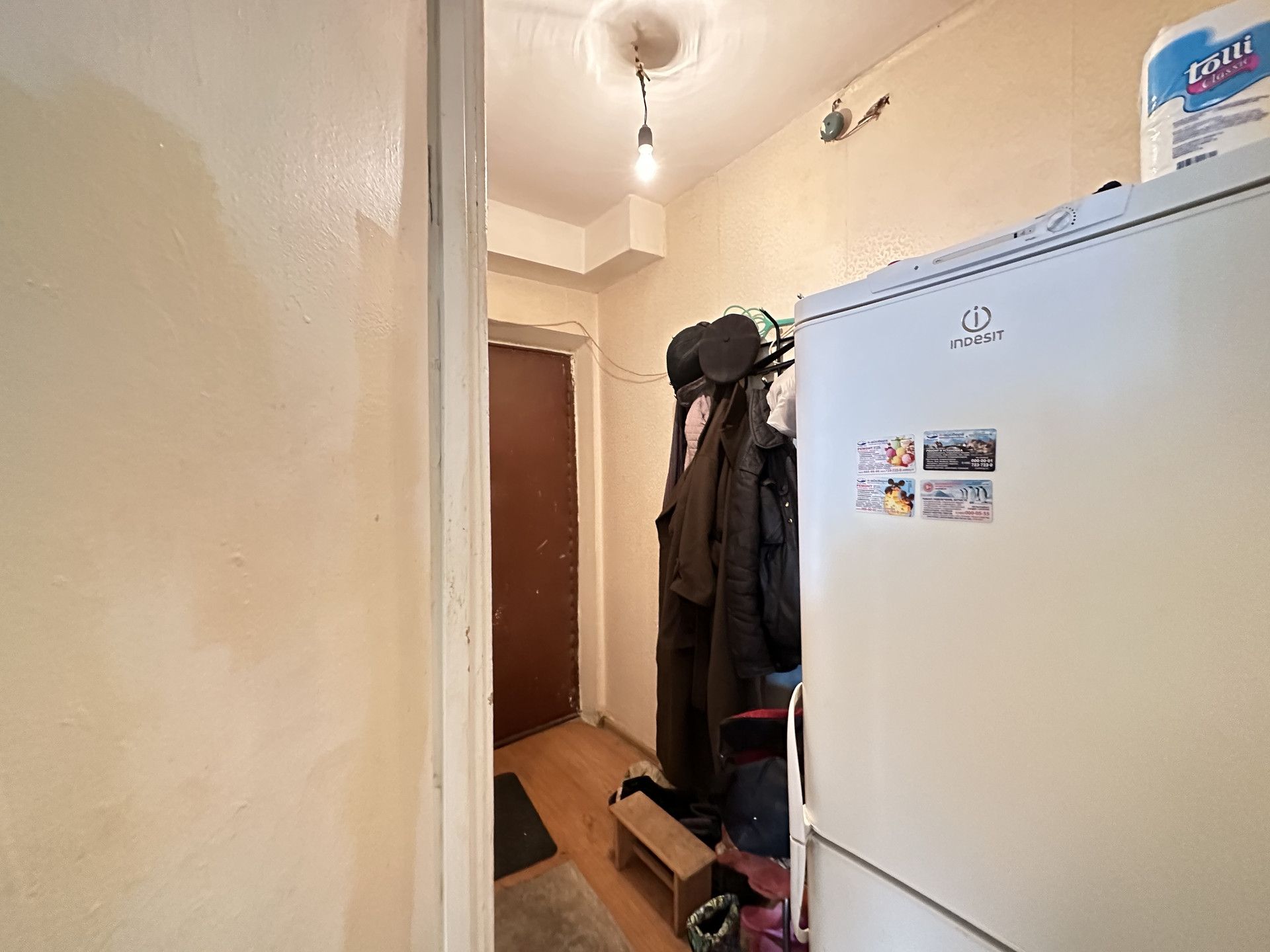 Требуется ремонт, комнаты смежно-изолированные, вторая комната запроходная с кладовкой. Можно комнаты сделать изолированными, балкон не застеклен.