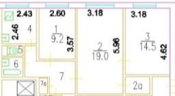 Общая площадь 61.6 м2