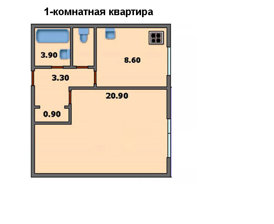 Площадь кухни 8.6 м2