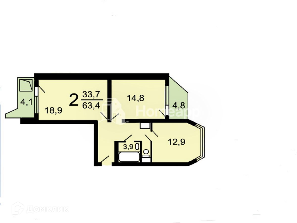 Жилая площадь 33.7 м2