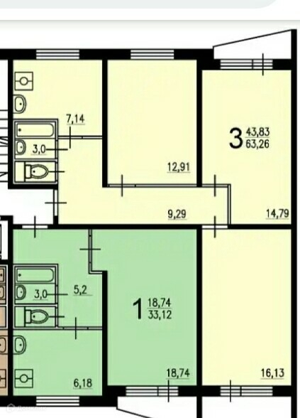 Общая площадь 63.26 м2