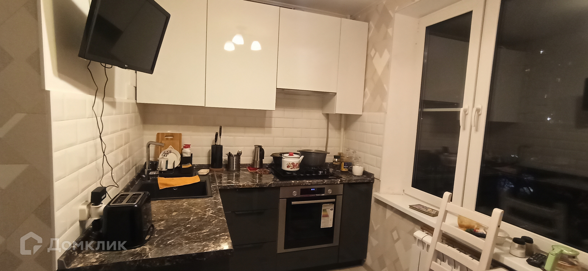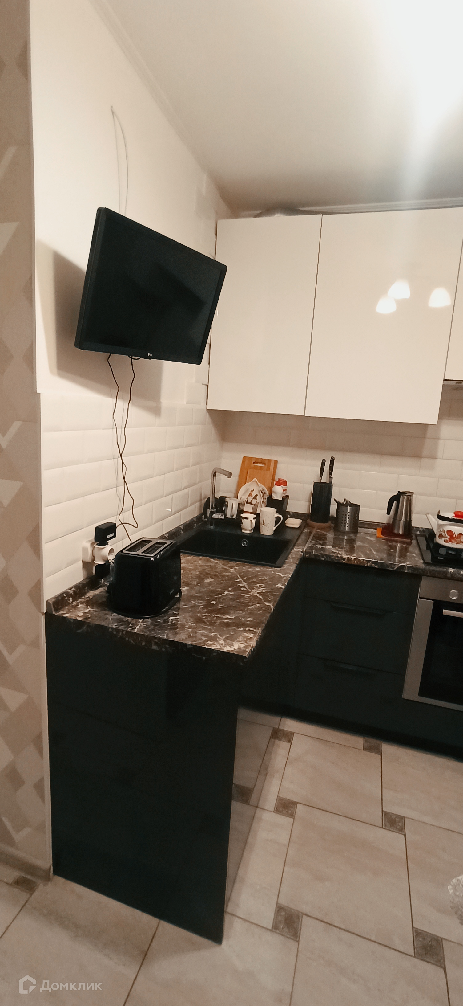 В квартире при отделке использованы качественные материалы. На кухне дорогая мебель и техника.