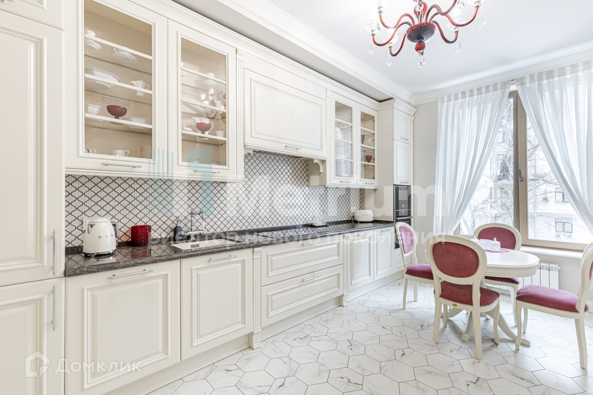 В безупречной дизайнерской отделке использованы качественные натуральные материалы. В квартире авторская итальянская мебель, эксклюзивный дубовый паркет и предметы интерьера, установлены тройные стеклопакеты и мраморные подоконники, кухня и санузлы оборудованы техникой премиального класса.