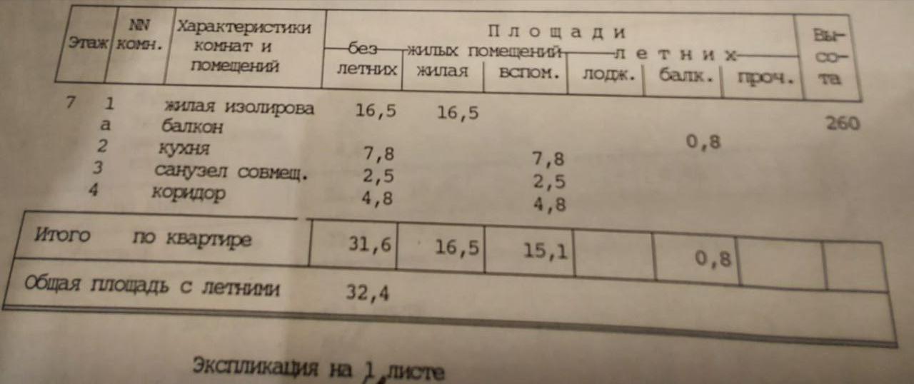 Общая площадь 32.4 м2