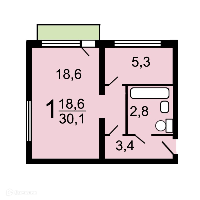 Общая площадь 31 м2