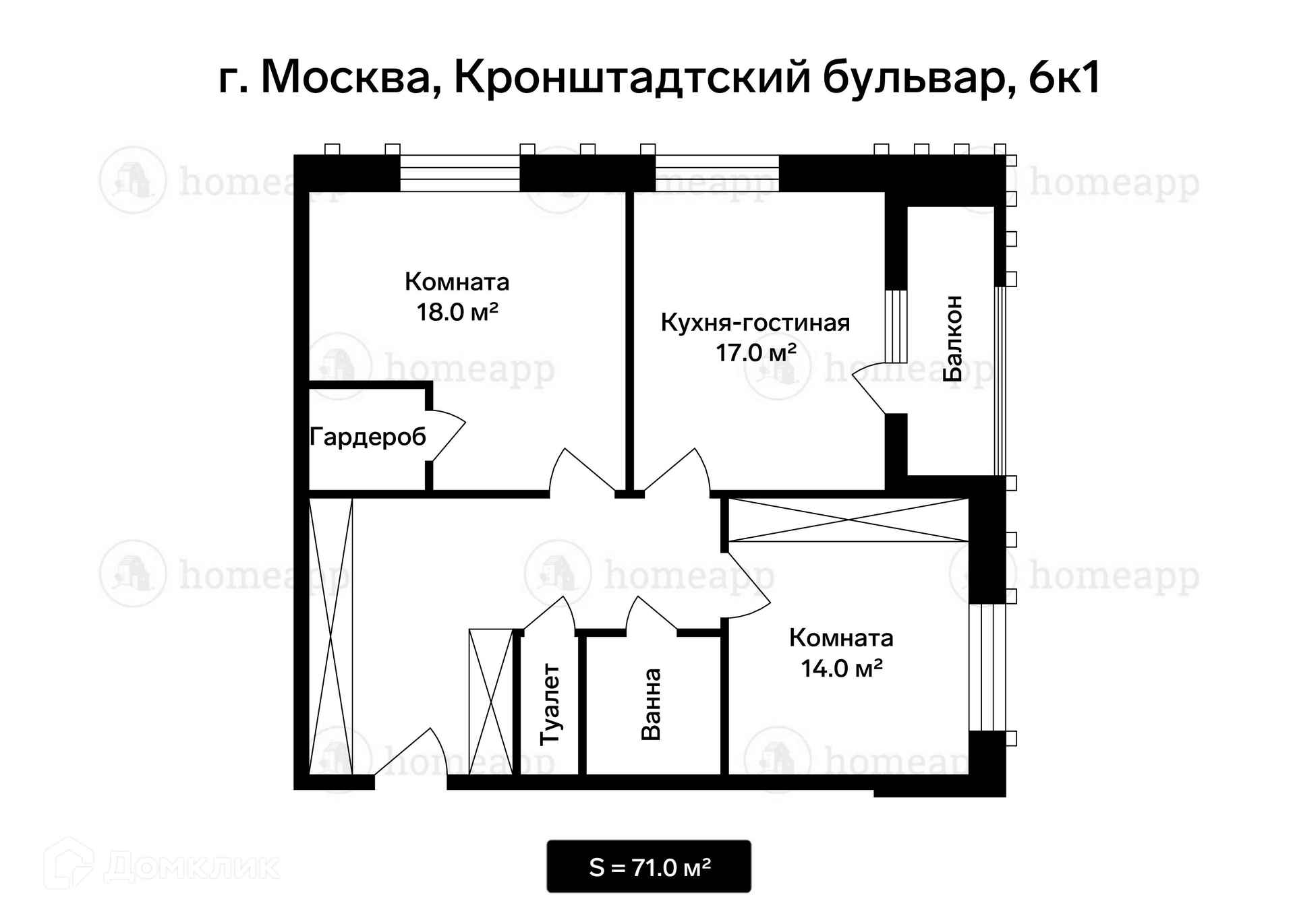 Общая площадь 71 м2