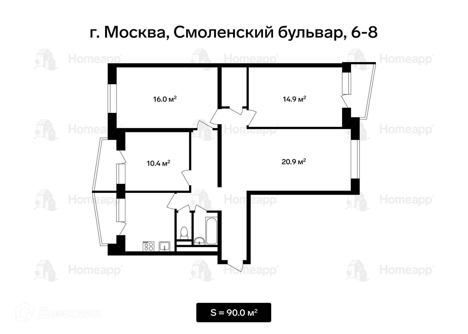 Общая площадь 90 м2