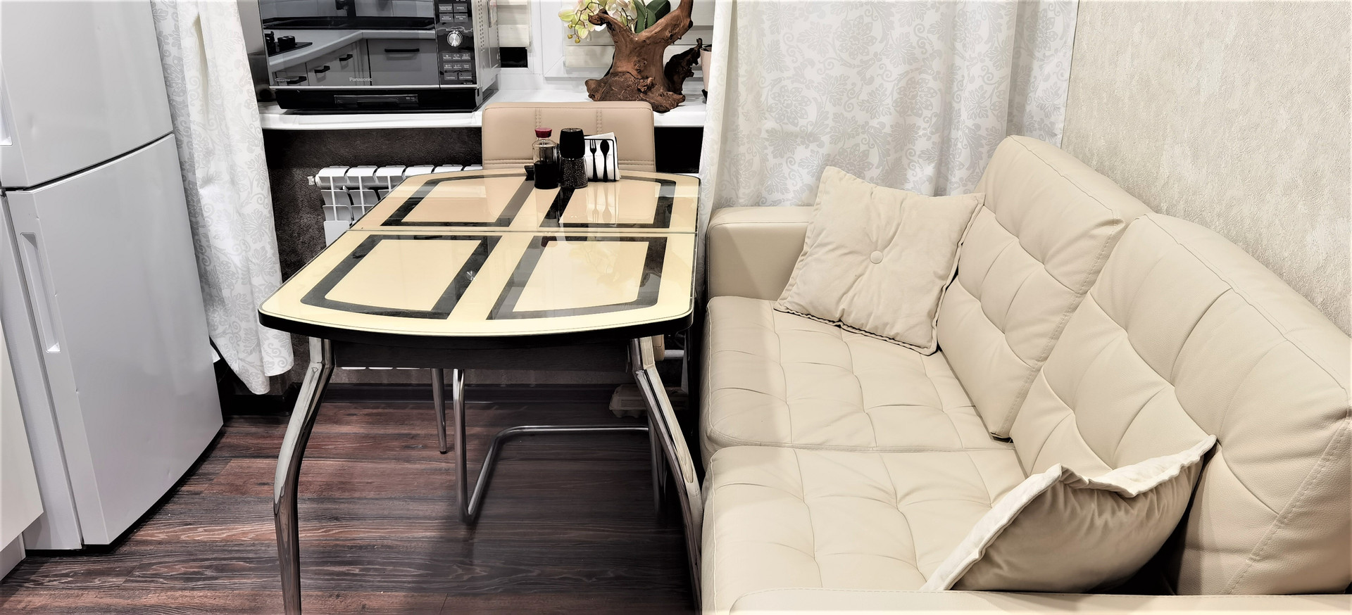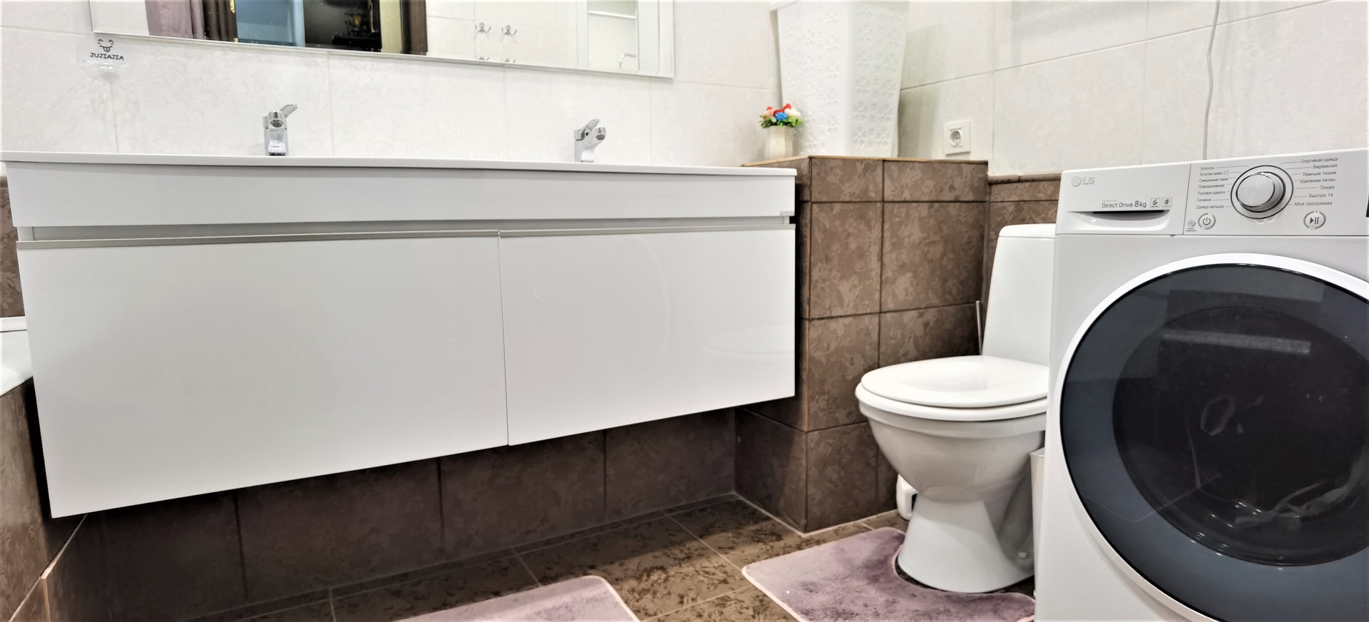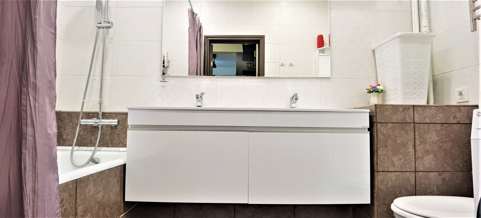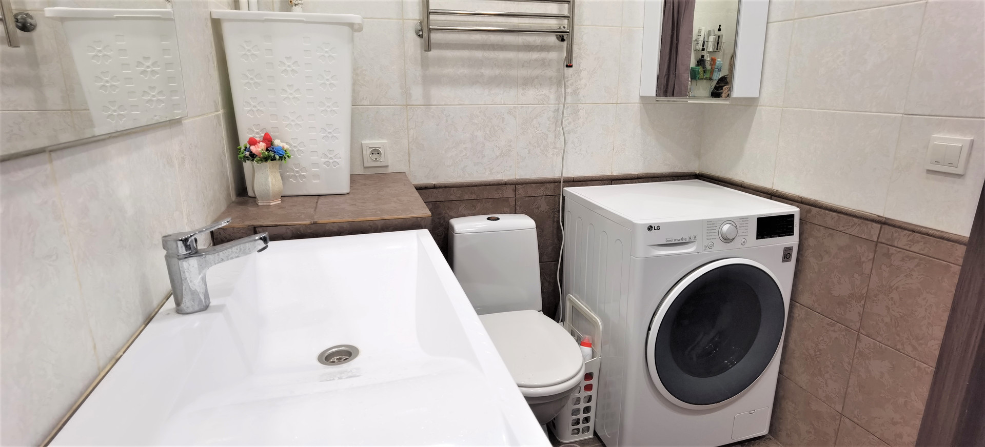 Ремонт делали в 2022 году. В квартире дорогая сантехника, качественный ламинат, плинтуса с подсветкой, моющиеся долговечные обои, современное освещение.